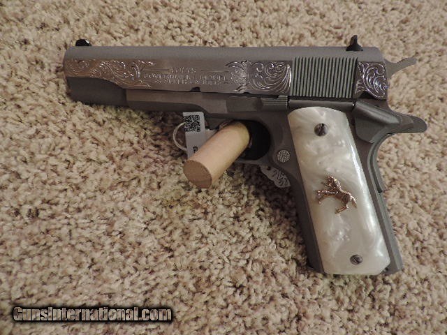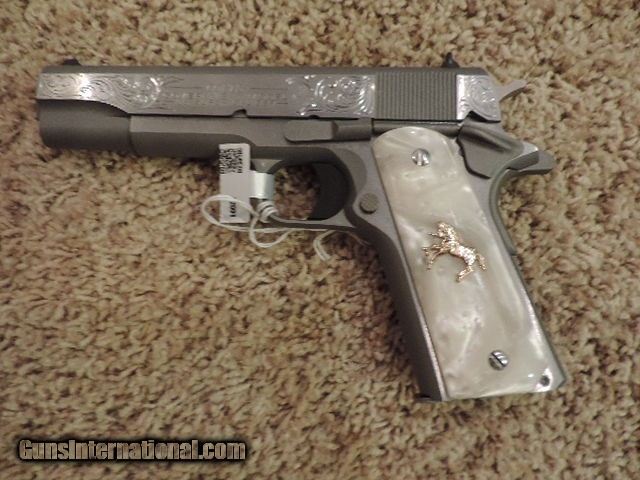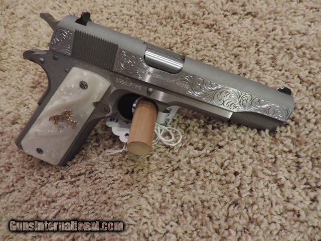 COLT 1911 BRUSHED STAINLESS 38 SUPER ENGRAVED