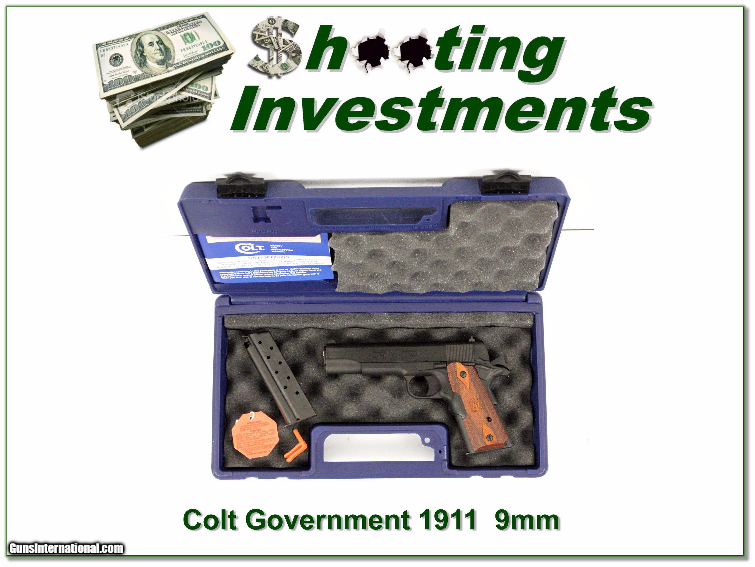 Description: This is a hard to find Colt Government in 9mm. It looks as new in case with manual and 2 magazines. It has laser Crimson Trace grips. I am selling this one on consignment and as such lay-a-way can’t be used. It does of course have the standard 3-day inspection. Shipping and insurance is $29 or $19 more if you want it shipped in a new Plano hard case. Please email me with any questions or larger pictures. (Consign your quality firearms with Shooting Investments for only 10%! Let me know if you have any you would like to sell!) 17-0916 Payment: Payment is by Money Order, Cashiers Check or Personal Check. I can now also accept MasterCard and Visa with a 3% convenience fee. PayPal can be used for some items but never firearms. Please let us know if you would like to pay via PayPal. Shipping: The shipping charge will be listed in each description. It is $39 for most long guns and $29 for most handguns. Some heavy guns or those insured for over $2000 will be higher. Shipments to Alaska and Hawaii are higher because air shipment is required. Most firearms are shipped on Tuesday and Thursday and usually in 5 days of receipt of payment. We package all shipments carefully and insure them. For long guns you can purchase a new Plano case for $19. They now cost us $22 when buying 100 at a time. Optics are shipped Priority Mail and most other non-firearm shipments are shipped First Class. Returns: Our return policy is simple. If for any reason you are not pleased with your purchase, you may return your item for a full refund of purchase price. Ammunition cannot be returned. It is important to us that you are happy. Guns cannot be fired or dissembled before returning them and they must be returned in the same condition as received. Notification of a return must occur with-in 3 days of receipt at your dealer. Shipping, convenience and dealer fees are not refundable and are the responsibility of the buyer. Lay-a-way: If needed, we offer a 60 day lay-a-way option on most firearms. It is 1/3 now, 1/3 in 30 days and 1/3 in 60 days. Lay-a-way firearm sales are final and if not completed the first payment cannot be returned. Consigning your firearms with Shooting Investments: We will help you get top dollar for your firearms. While most local guns shops charge 20% or more, our fee is only 10% with a minimum of $75. At your local gun shop it might take months to sell. Selling on-line provides instant access to thousands of interested buyers. You won’t find any other on-line dealer willing to sell your firearms for only 10% or listing every gun on 3 separate s. Selling through an House typically costs the seller 15% and the buyer an addition 15% (so 30%) and you have to wait several months to sell and longer to receive funds. If properly priced, we will sell your firearms in a few weeks. Send us an email or give us a call and we’ll explain how easy it is for you to get top dollar. Trading: Trading for use is really just buying your gun to re-sell. If you have a gun you want to trade, please email a picture and we will let you know what we can give or it. You will always get more if we sell it for you on consignment. Help for California Buyers: We are happy to ship to California. It is the buyer’s responsibility to make sure any item you buy is legal in your state. We are also happy to help with your purchase of a firearm from someone other than us. If you see a gun you would like to buy but the seller can’t or won’t ship to California they can ship to use and we’ll then ship it to your California dealer. The cost for this service is only $30 + shipping. Let us know if we can help! SOLD |