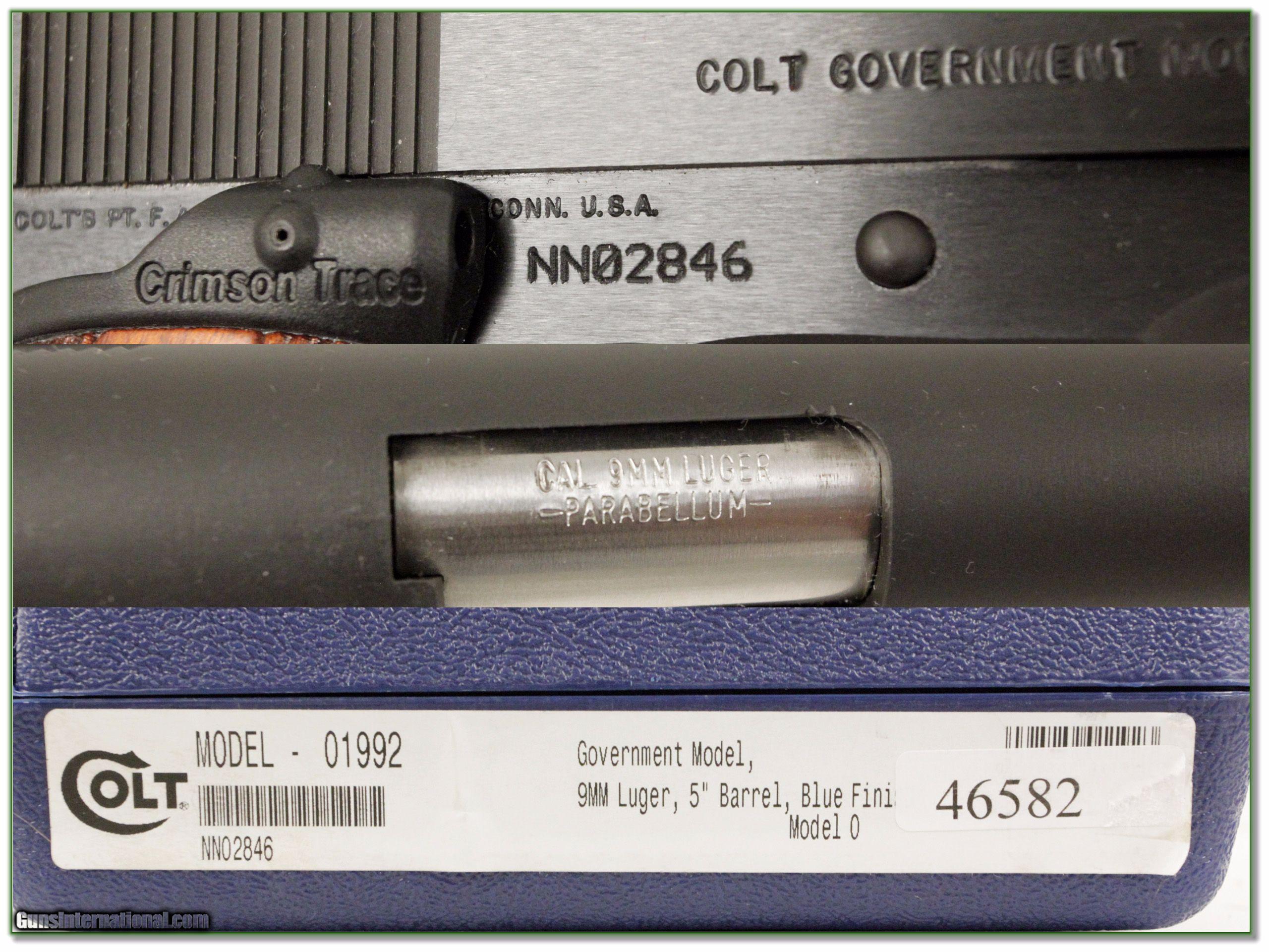 Colt 1911 Government Model 1992 rare 9mm Crimson Trace