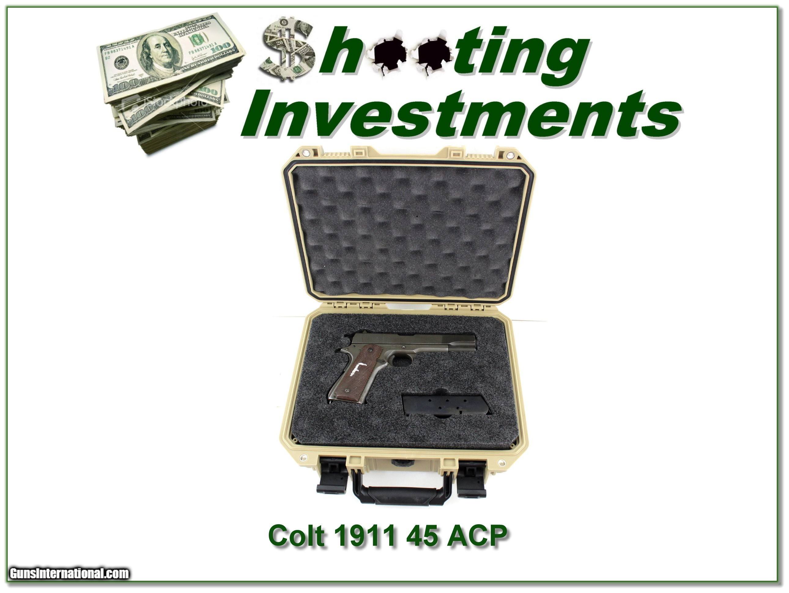 Description: Collectors, this is a 1944 MADE Colt 1911 45 ACP. It was purchased through the Civilian Marksman Program and is in excellent condition. It has one magazine and comes in CMP case as seen. I am selling this one on consignment and as such lay-a-way can’t be used. It does of course have the standard 3-day inspection. Shipping and insurance is $39. Please email me with any questions or larger pictures. (Consign your quality firearms with Shooting Investments for only 12%! Let me know if you have any you would like to sell!) 23-1287 Payment: Payment is by Money Order, Cashier’s Check or Personal Check. I can now also accept Credit Cards (MasterCard, Visa, Discover & American Express) with a 3% convenience fee. Shipping: The shipping charge will be listed in each description. It is $49 for most firearms. Some heavy guns or those insured for over $2000 will be higher. Shipments to Alaska and Hawaii are higher because air shipment is required. Most firearms are shipped on Tuesday and Thursday and usually in 5 days of receipt of payment. We package all shipments carefully and insure them. Optics are shipped Priority Mail and most other non-firearm shipments are shipped First Class. Returns: Our return policy is simple. If for any reason you are not pleased with your purchase, you may return your item for a full refund of purchase price. Ammunition cannot be returned. It is important to us that you are happy. Guns cannot be fired or dissembled before returning them and they must be returned in the same condition as received. Notification of a return must occur within 3 days of receipt at your dealer. Shipping, convenience and dealer fees are not refundable and are the responsibility of the buyer. Lay-a-way: If needed, we offer a 60 day lay-a-way option on most firearms. It is 1/3 now, 1/3 in 30 days and 1/3 in 60 days. Lay-a-way firearm sales are final and cannot be returned. If a lay-a-way is not completed the first payment cannot be refunded. Consigning your firearms with Shooting Investments: We will help you get top dollar for your firearms. While most local guns shops charge 20% or more, our fee is only 12% with a minimum of $75. At your local gun shop it might take months to sell. Selling on-line provides instant access to thousands of interested buyers. You won’t find any other on-line dealer willing to sell your firearms for only 12% or listing every gun on 3 separate s. Selling through an House typically costs the seller 15% and the buyer an addition 15% (so 30%) and you have to wait several months to sell and longer to receive funds. If properly priced, we will sell your firearms within a few weeks. Send us an email or give us a call and we’ll explain how easy it is for you to get top dollar. Trading: Trading for us is really just buying your gun to re-sell. If you have a gun you want to trade, please email a picture and we will let you know what we can give for it. You will always get more if we sell it for you on consignment. SOLD |
