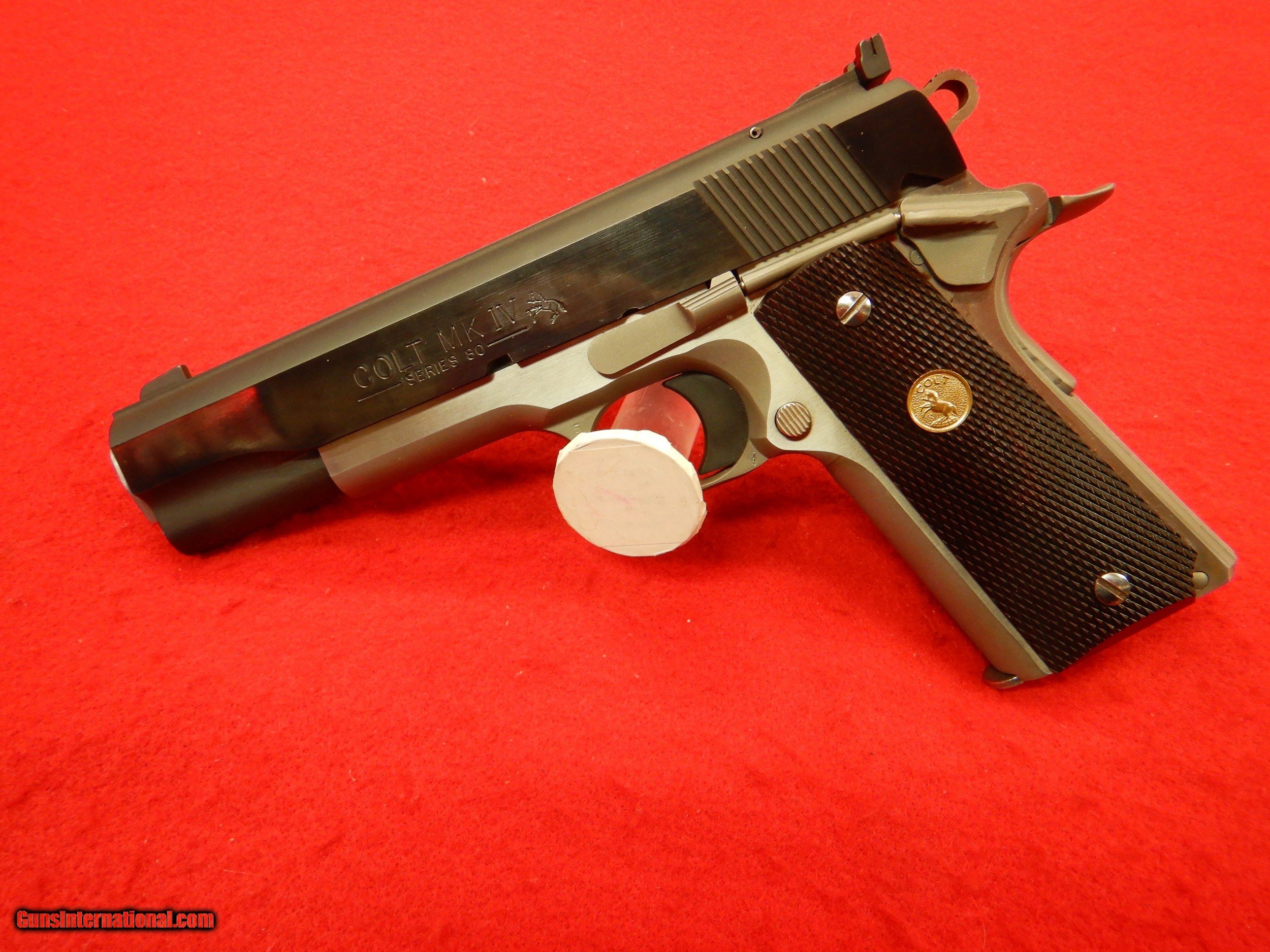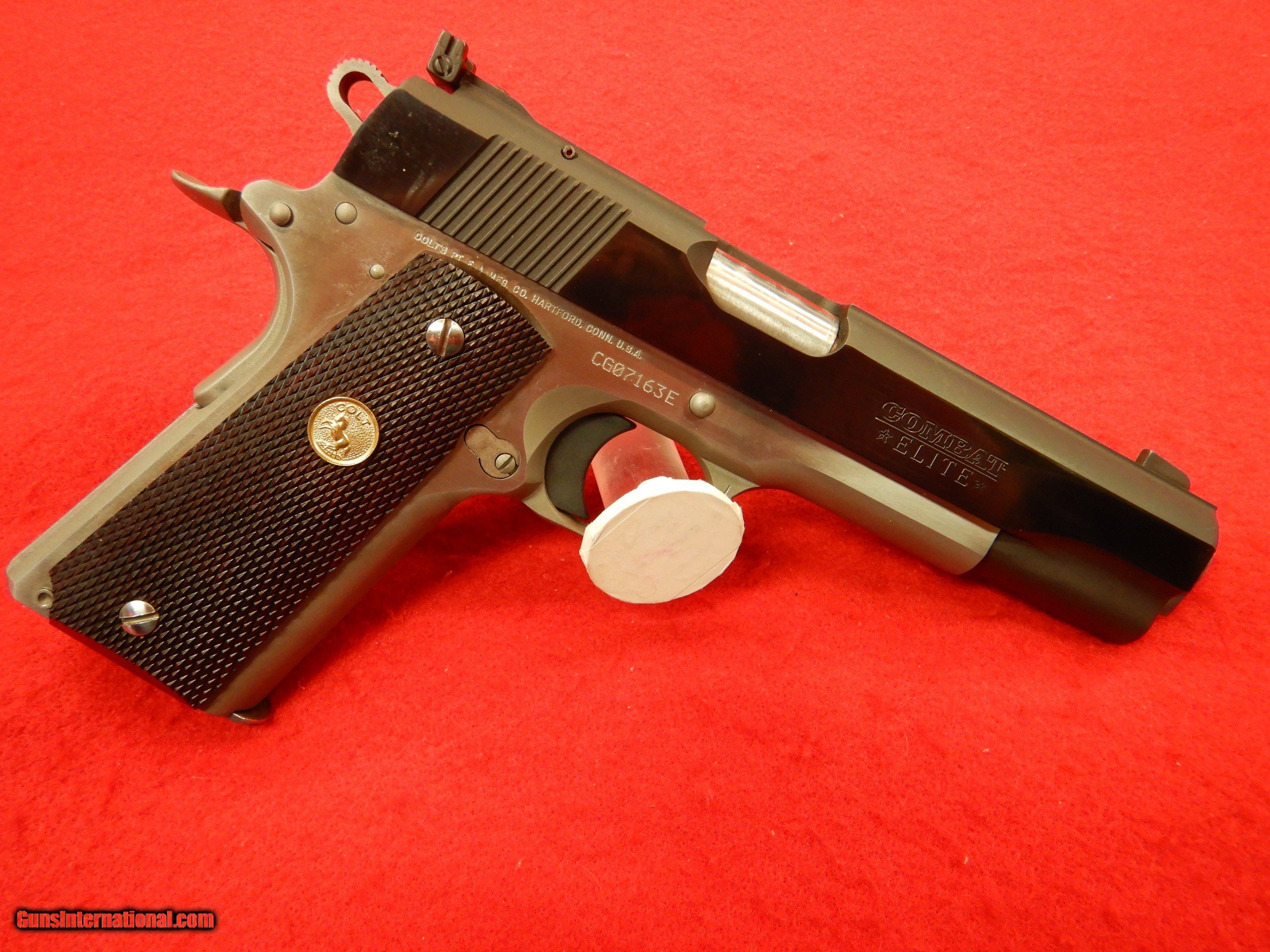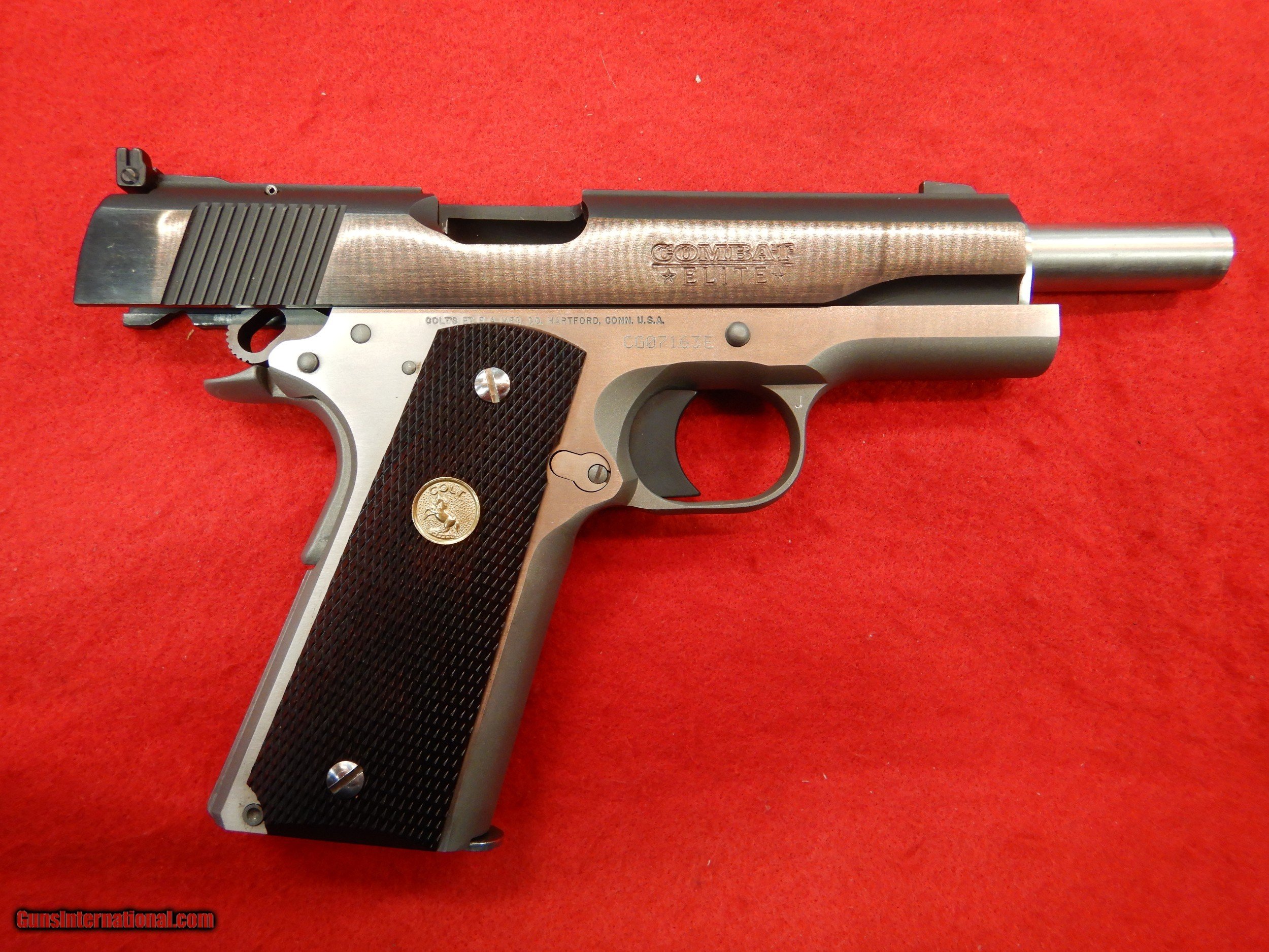 Description: WE HAVE A PRE-OWNED COLT 1911 GOVERNMENT COMBAT ELITE IN .45 ACP CALIBER, SPECS ARE AS FOLLOWS; Colt Combat Elite Government 45 Auto (ACP) Black/Stainless 5in Pistol - 8+1 Rounds - The Combat Elite is back! The Combat Elite family returns for 2018 as a modern styled Sided Two Tone pistol packed with premium features. 25LPI Checkered, Night Sights, and Ambi Safety make for a top shelf pistol that's ready to hit the range. This Government version features a 5in Barrel in the classic 45ACP.