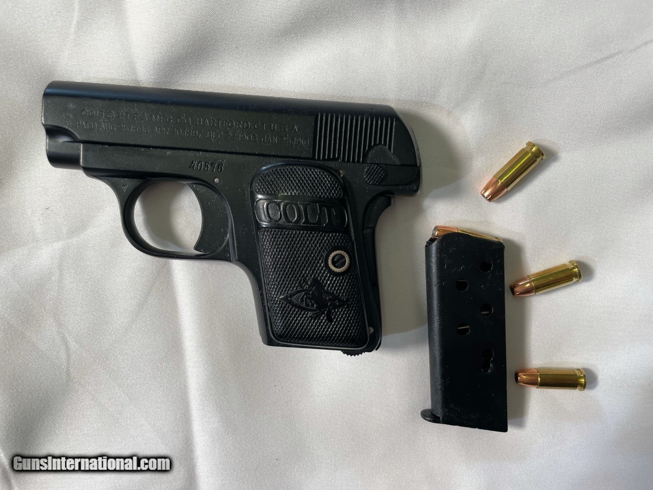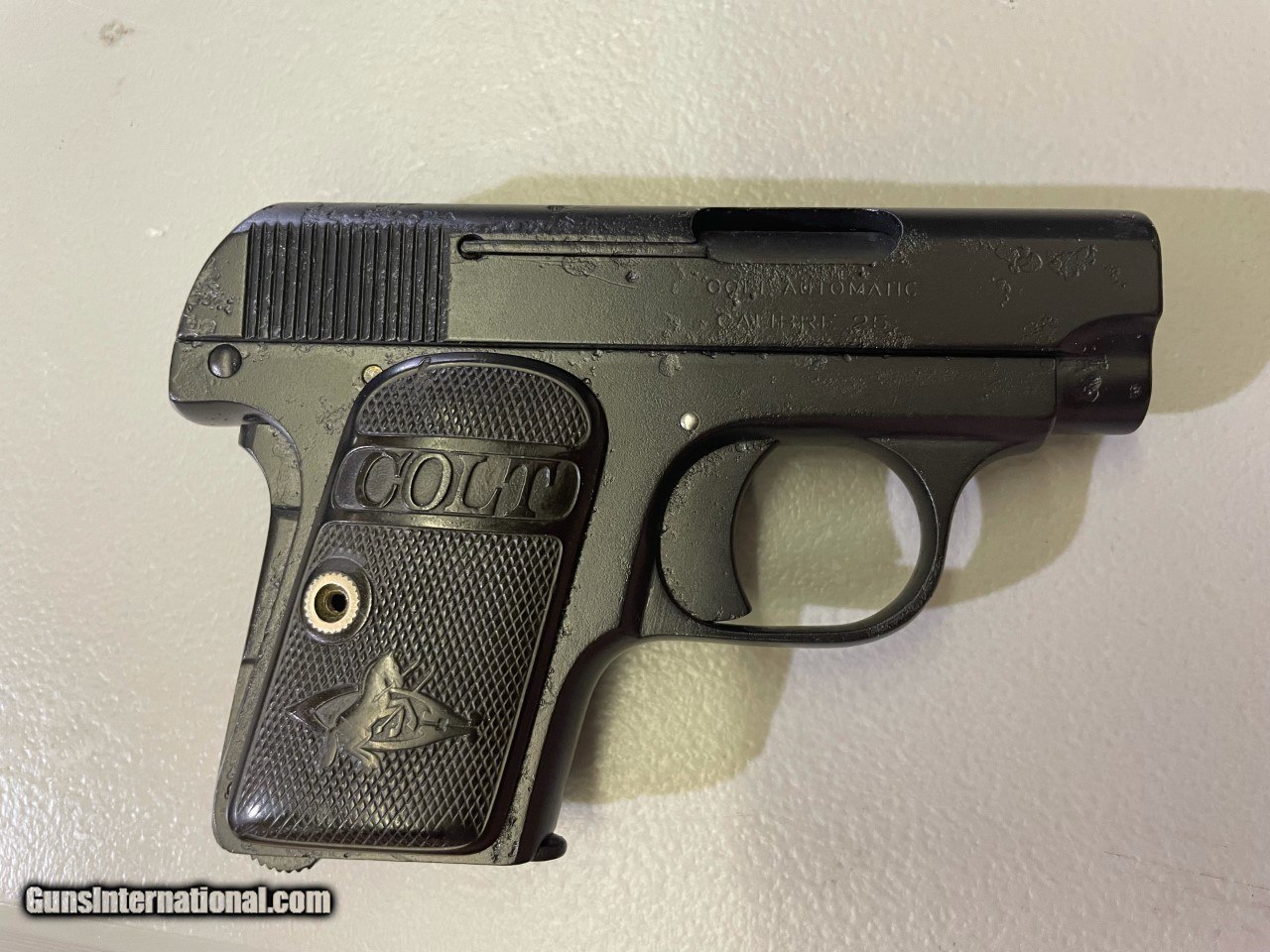 Description: 1910 Colt Vest Pocket .25 Auto -Coated Black -Slight Pitting Throughout Nothing major Fires Just Fine SOLD Handgun Caliber: .25 ACP (6.35mm Browning, 6.35×16mmSR) Manufacturer: Colt Model: Vest Pocket Chambers: .25 ACP Condition: Good |