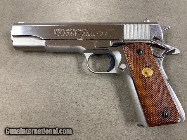 Colt 45acp Gov't Model Series 70 Mark IV 5 Inch Bright Nickel - mint