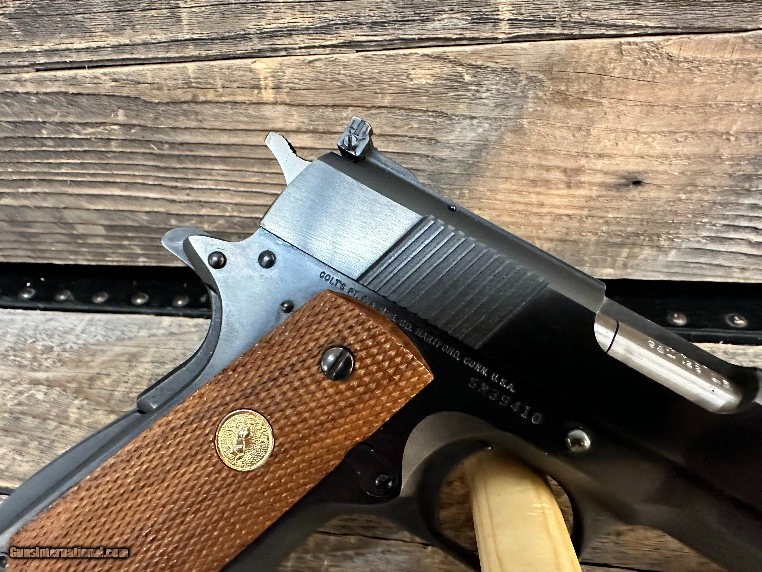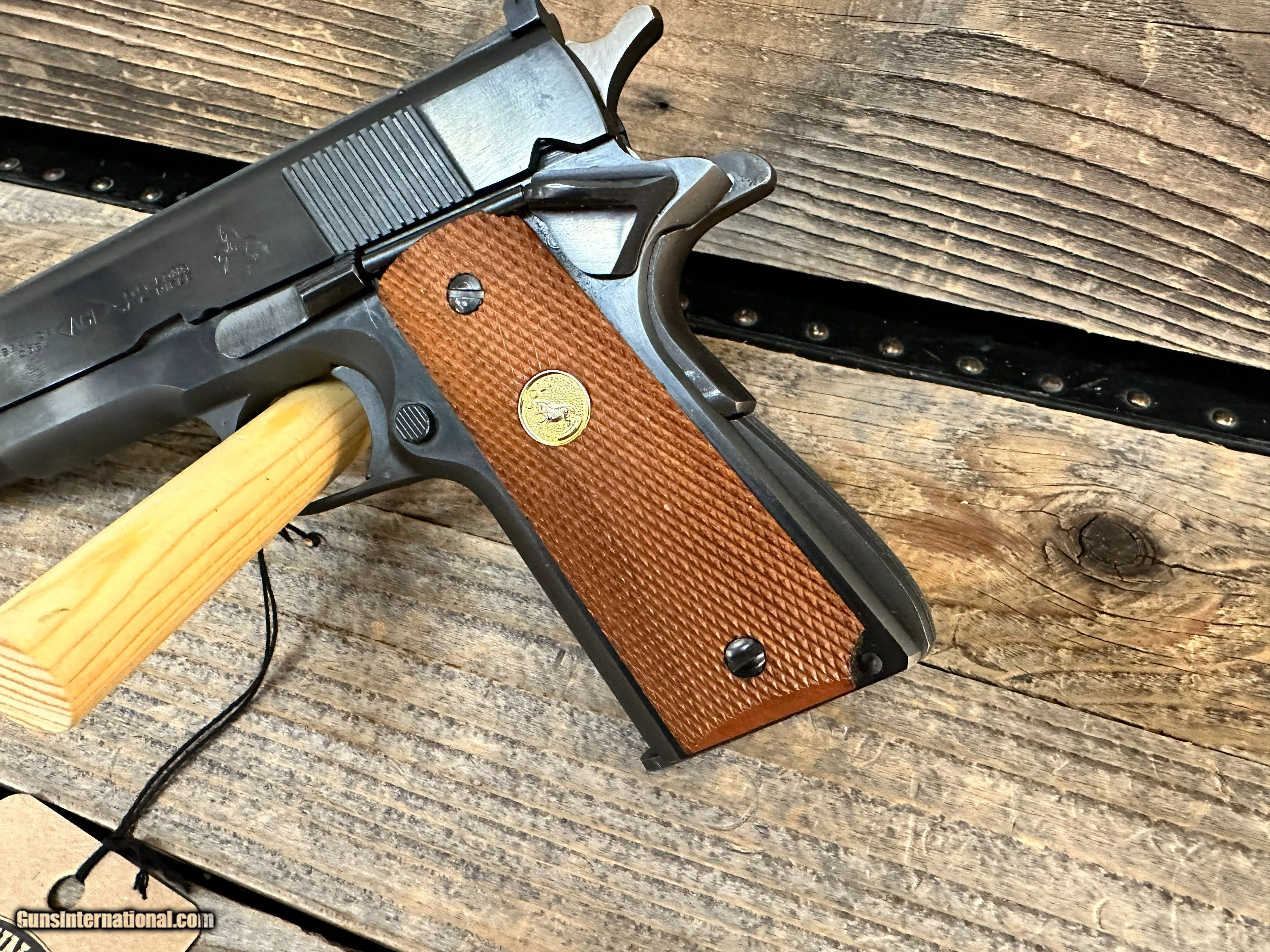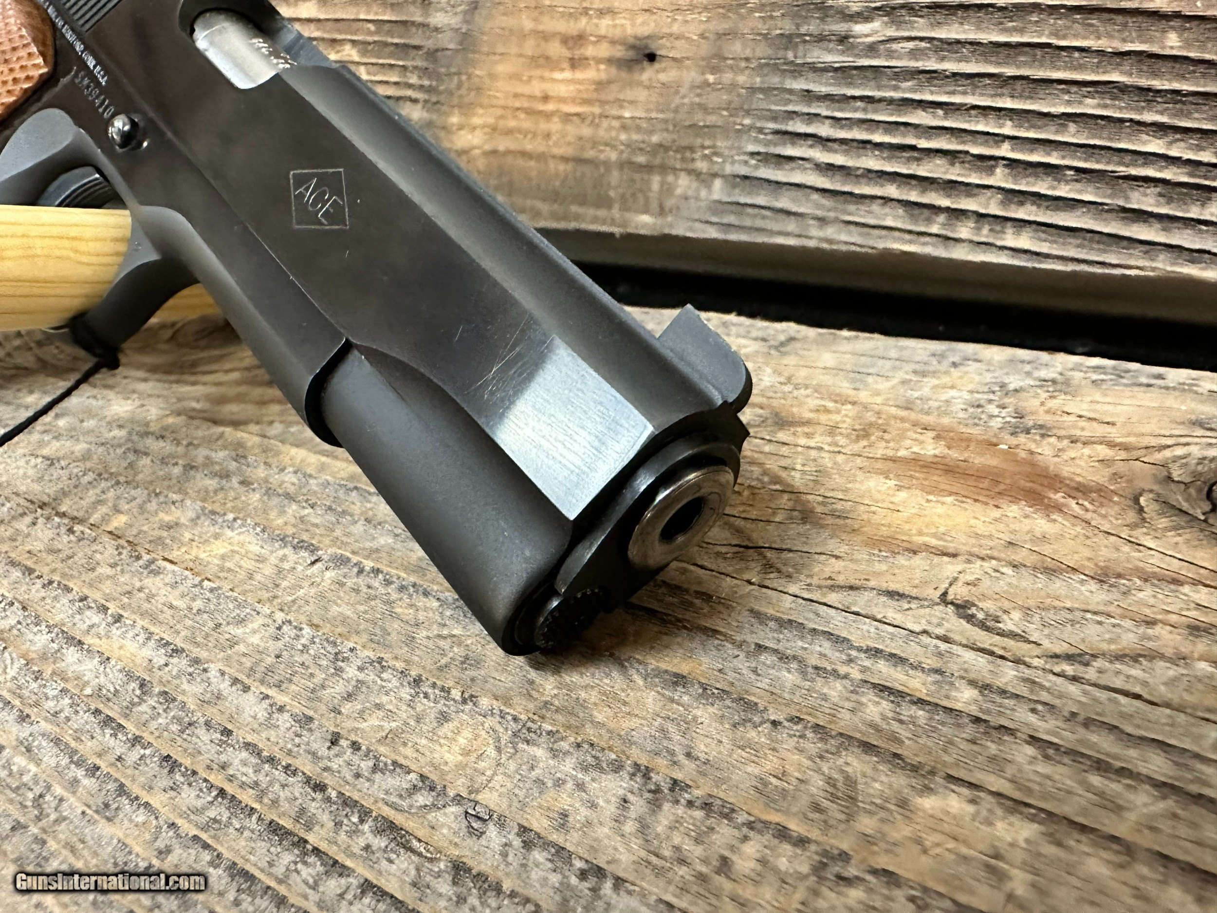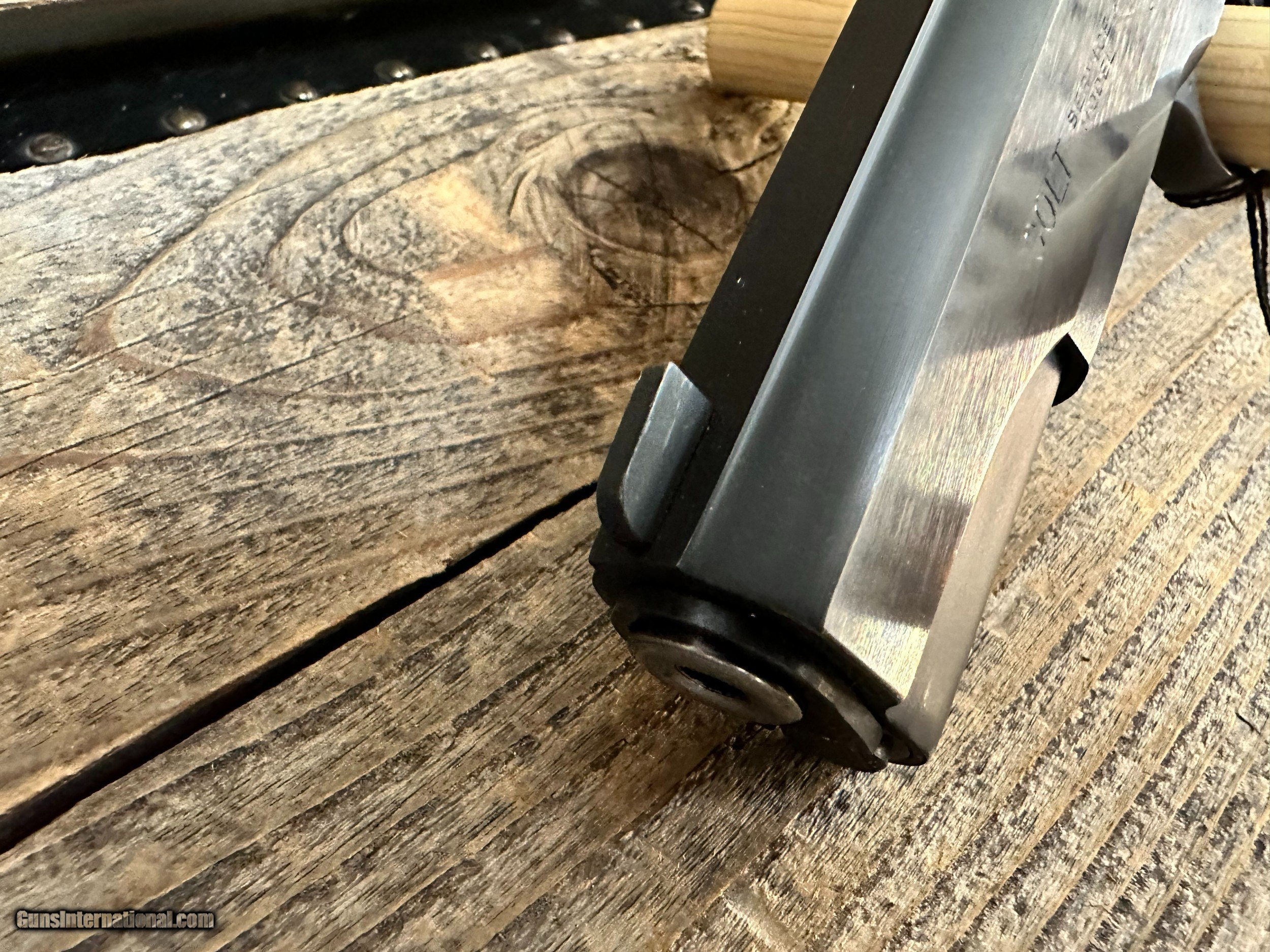 Description: Colt Ace 22 LR MFG 1981 While the Colt 1911 was chambered in the powerful .45 ACP cartridge, the externally similar Colt Ace was chambered for the far less powerful .22 LR cartridge. Accordingly, military, police, or civilian shooters could shoot the Ace without the recoil and expense of the 1911, but with similar ergonomics and sight picture. Shipping starts at $75 for long guns and $50 for handguns No sales or shipping to New York, New Jersey, California, Hawaii SOLD Handgun Caliber: .22 Long Rifle Manufacturer: Colt Model: Ace Serial Number: SM39410 Condition: Very Good Metal Condition: Very Good Wood Condition: Very Good Bore Condition: Very Good |