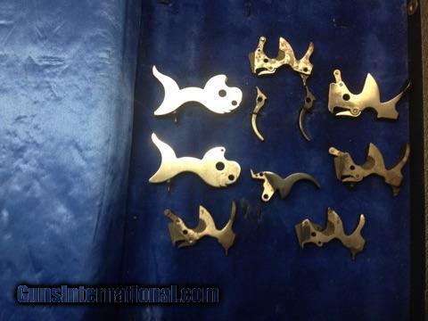 Description: Colt Armorer's Kit: Colt SA 7 1/2" Blue Barrel 3rd Gen 45LC Colt SAA Triggers 3rd Gen Colt SAA Loading Gate, Color Cased Colt SAA Hammers Colt Python Hammer, Trigger, and Cylinder Latch Colt Diamond Back Hammer (38/357) Colt Diamond Back Hammer (22LR) Colt SAA Centerfire Hammer Colt Official Police SOLD |