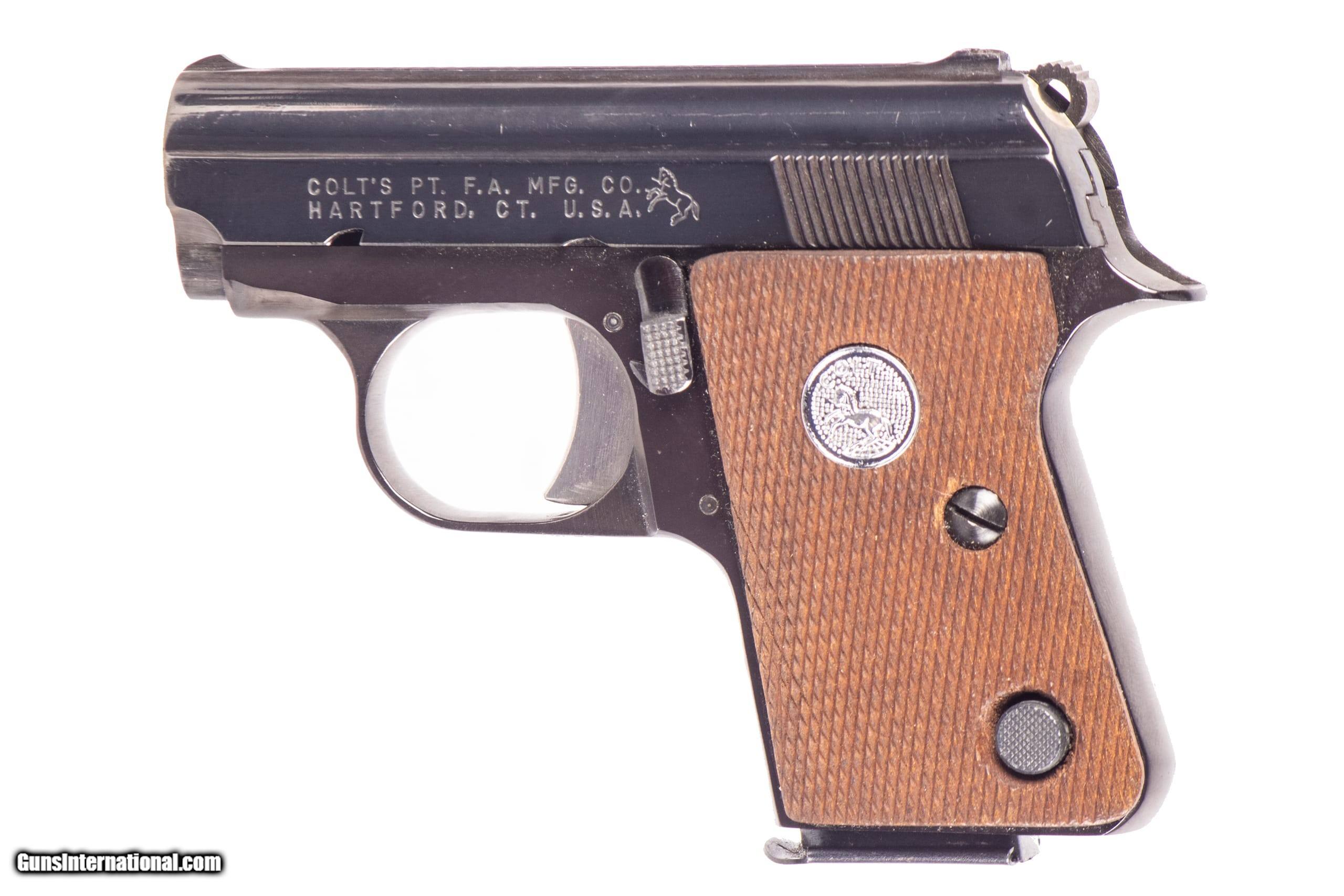 Description: Colt Auto-25 chambered in 25ACP with a 2 inch barrel, mirror-shine bore with immaculate rifling. This pistol shows a manufactured year of 1973 and has minor wear to the finish of the frame. The NRA grading condition for this USED firearm is Very Good. We ship domestically in the United States. Additional shipping rates apply to Alaska and Hawaii. Dury's Lifetime Warranty: All firearms purchased from Dury’s Gun Shop, NEW or USED, are covered by a lifetime warranty. We will repair or replace, at our discretion, any firearm purchased from Dury’s Gun Shop, Inc. for as long as it is owned by the purchaser. This warranty is not transferable. WE BUY GUNS! NO COLLECTION TOO BIG OR SMALL FOR OUR GUNS INTERNATIONAL CUSTOMERS ALL OF OUR FIREARMS CAN BE PURCHASED DIRECTLY FROM OUR DURY'S GUNS SITE ! SOLD Manufacturer: Colt Model: Auto-25 Caliber Info: 25 ACP (6.35mm) Barrels: 2inches |