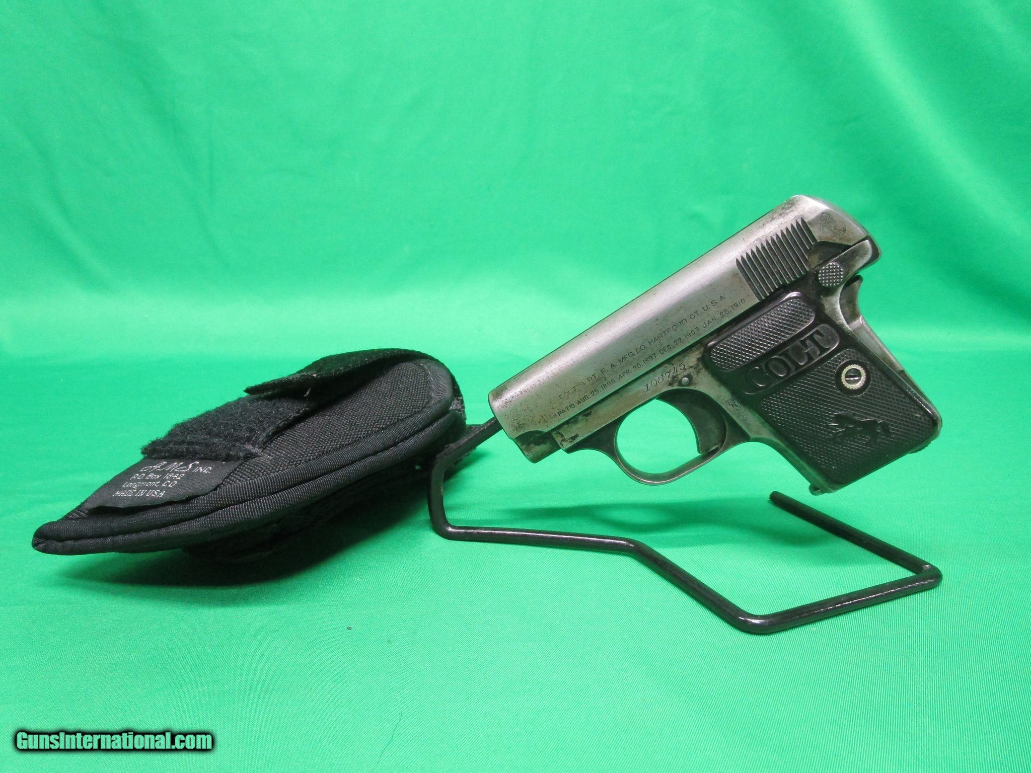 Description: Guns Listing ID: 494876 We have a used Colt Automatic semi-automatic pistol for sale. This is chambered in 25ACP with a 2” barrel. It comes as shown in pictures with holster & 1 magazine. This is in Fair Used Condition with finish loss. Overall we would grade at approx 90%. Check out the pictures and feel free to call or email with any questions. SOLD Manufacturer: COLT Model: AUTOMATIC Caliber Info: .25 ACP Condition: Used - Non-Certified Barrels: 2 Finish: blued |