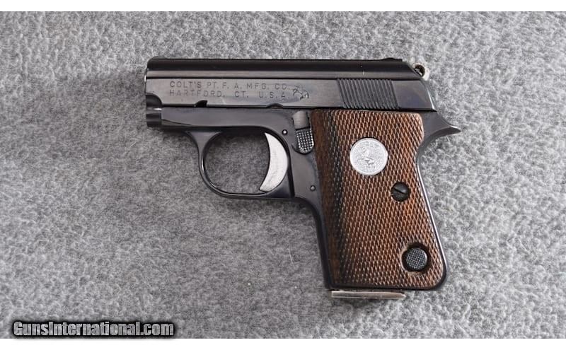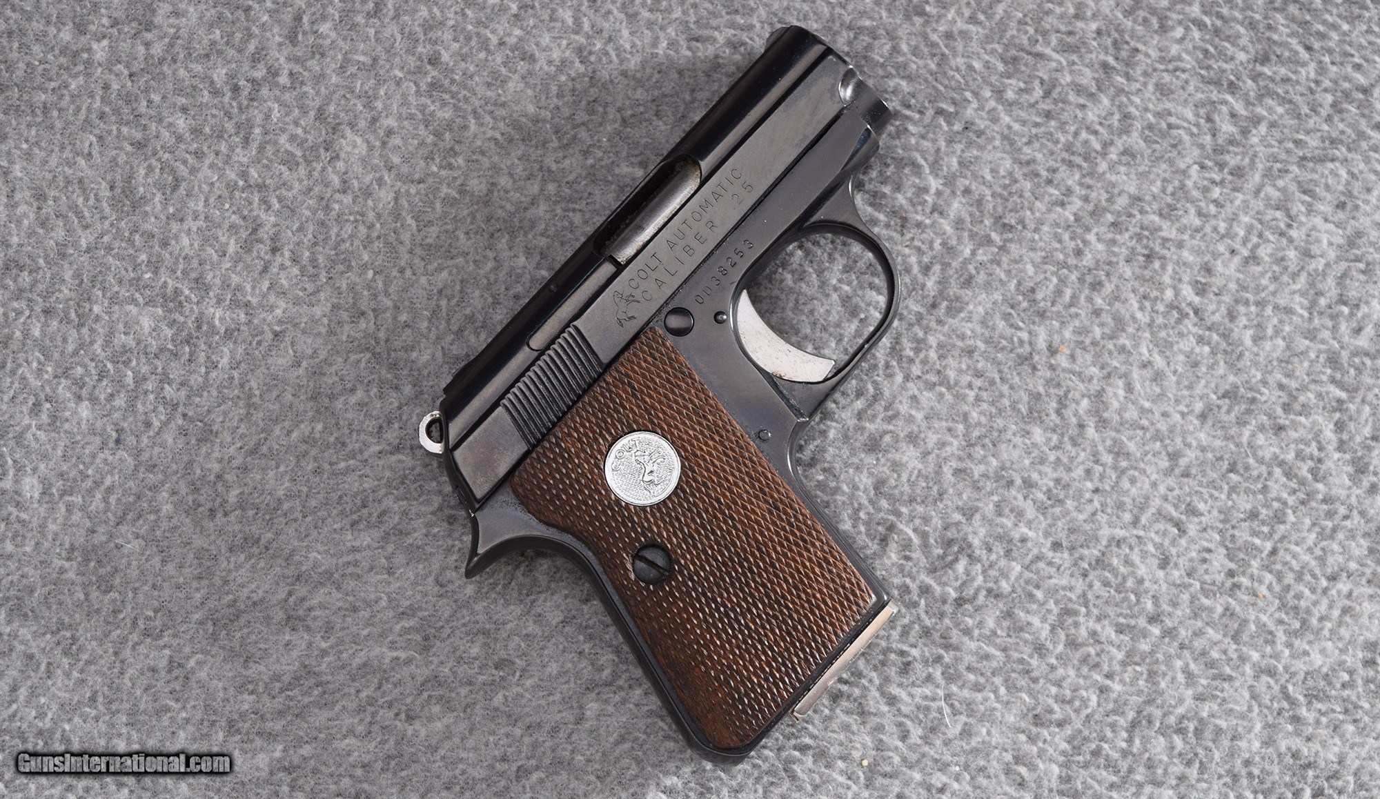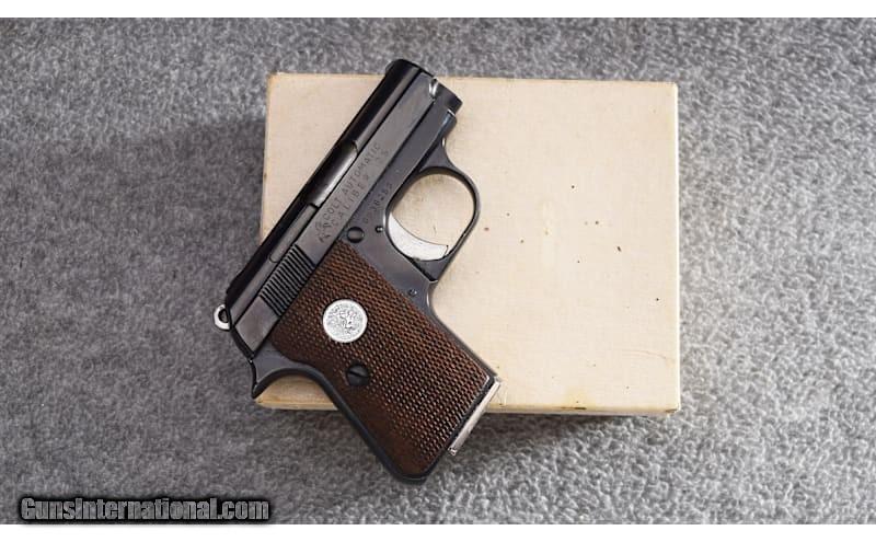 Description: This Colt Automatic in .25 ACP remains in very good overall condition. It has checkered two panel grips. The blue shows some light wear on the high edges. The bore shows some fouling, but the rifling is still distinct. This pistol will ship with one (1) Colt .25 ACP magazine. A box is included, but it does not appear to be the original factory box. This pistol was manufactured in 1971. .25 ACP Metal Condition: Very Good Wood Condition: Very Good Bore Condition: Very Good Barrels: 2 Triggers: Factory SA Only Butt Pad: Checkered Two Panel Grips Weight: 14 Oz Sights: Blade Front - Integral U Notch Rear Item Location: Wheeling Price: $679.99 Contact Seller |