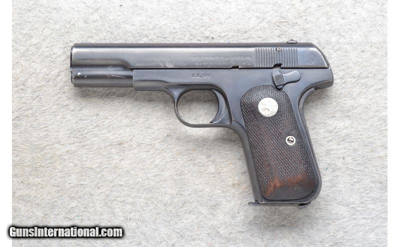 Description: .32 Rimfire Long SOLD Chambers: Semi-Auto 7 round magazine. Metal Condition: Fair. Shows some light wear and handling marks. May have been reblued at one time. Wood Condition: Fair. Shows wear. Barrels: 4 inch barrel with a blued rear serrated slide. Triggers: Solid. Sights: Blade front. Notch rear. Item Location: Richfield, WI |