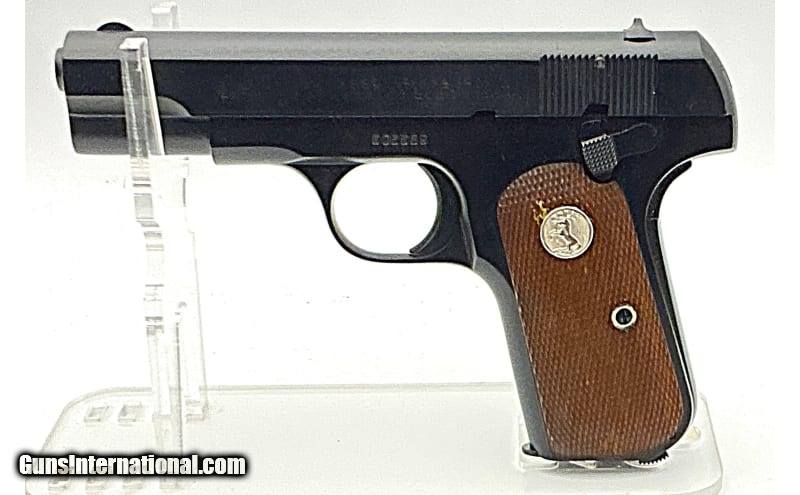 Description: If you're looking for a cool piece to add to the collection or a great shooting classic, this Colt Automatic is the firearm for you. This particular firearm has been bead blast and blued to a very deep black color. The checkered walnut grips are original to the firearm and have been cleaned up beautifully. This firearm features a 3.75" BBL chambered in the legendary 32 rimless. Give us a call! .32 Rimfire SOLD Barrels: 3.75 inches Item Location: Lone Tree, CO |