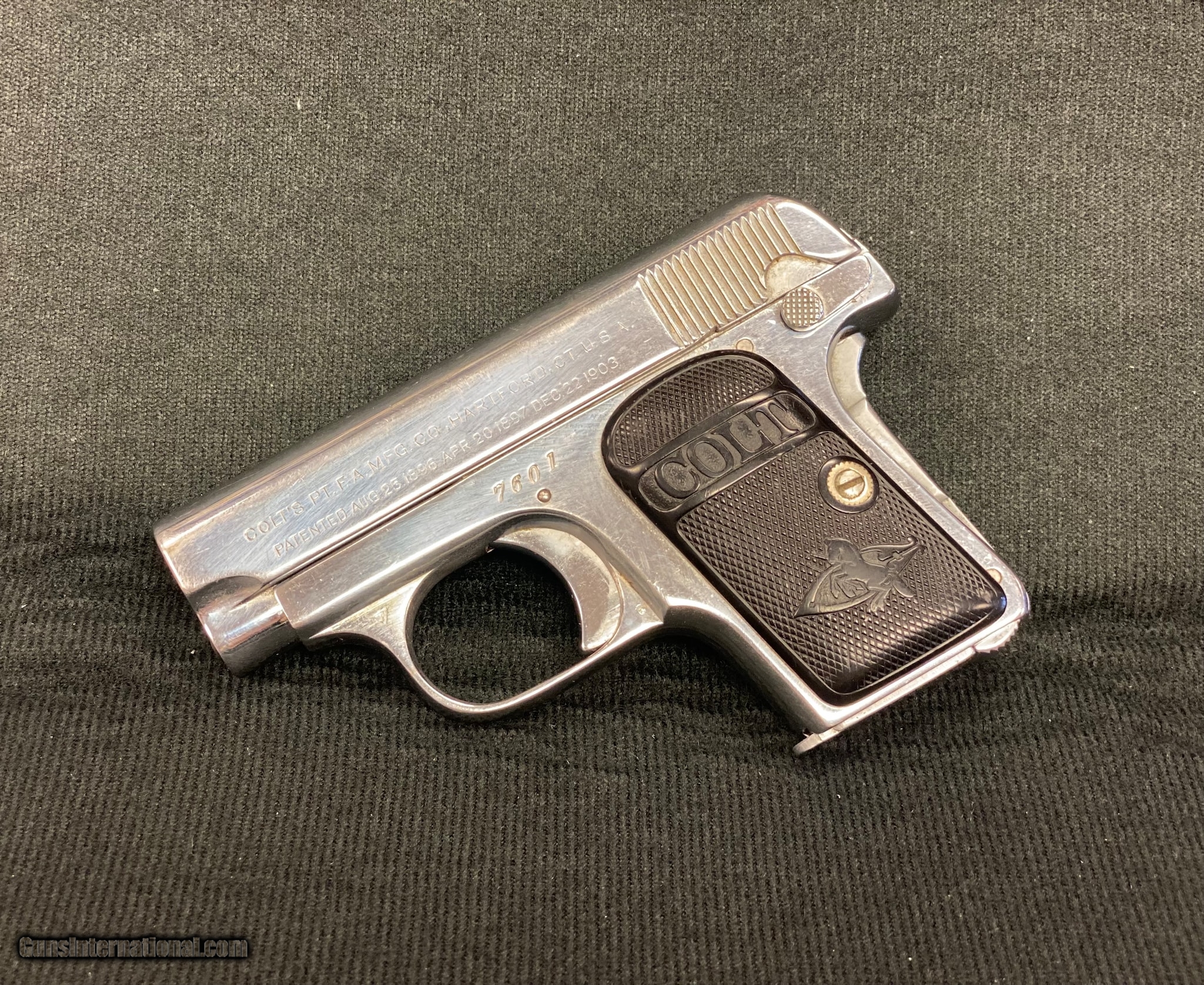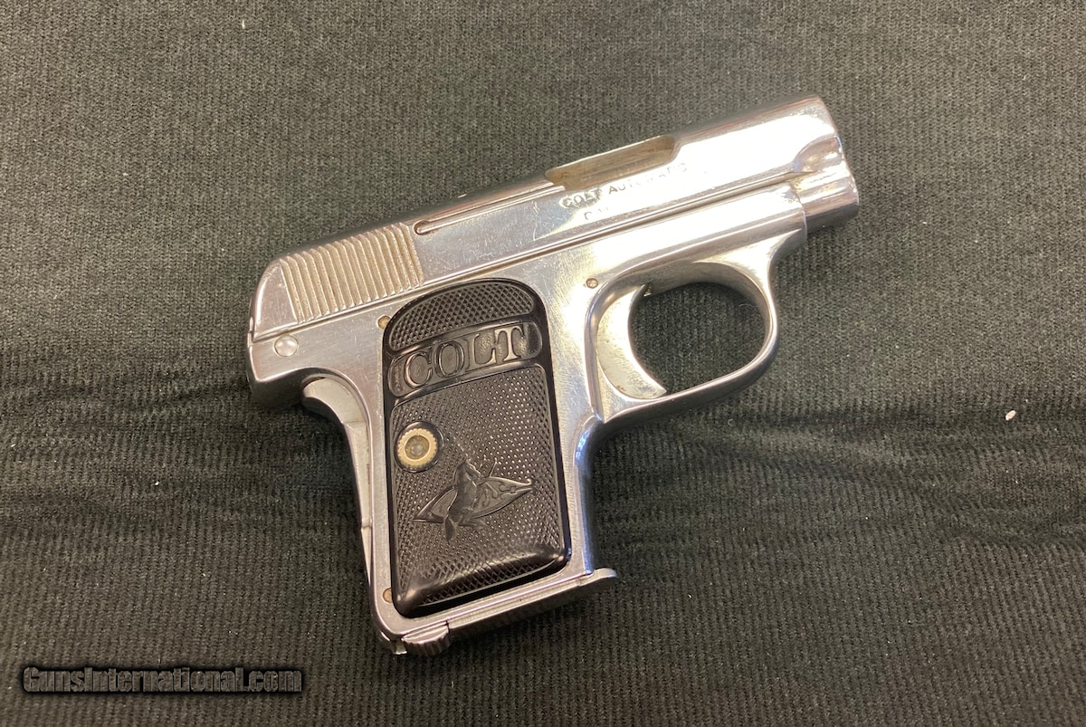 Description: Guns Listing ID: 653784 Colt 25 Auto Derringer in very good condition. Flatter and more compact than the Derringer of old, these small semi-automatic pistols could easily be hidden in a vest pocket! Or any other pocket, your sock, inside your hat, you name it. This pistol was used mostly as a hide out gun for back up purposes or when carrying a larger pistol was impractical. (Note: Ian Fleming originally had his James Bond character armed with a .25 Beretta before the movies gave him a Walther PPK.) Firing a 45 grain bullet at 815 feet per second, the anemic little round was only good at close range and against no barriers in front of the target. Still, it was better than nothing and was widely used. SOLD Curio/Relic: Yes Manufacturer: COLT Model: Automatic Colt Caliber Info: .25 ACP Condition: Used - Non-Certified Barrels: 2 BARREL Finish: STAINLESS |