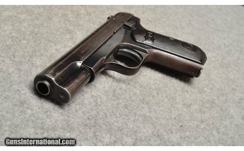 Description: The hammer fired hammerless, this Colt Automatic Hammerless in .38 ACP used a new shrouded hammer design. A classic that was used in both World War. It has aged quite a bit with wear and rust on the metal and the right grip has broken. .380 ACP Chambers: .38 ACP Metal Condition: Worn Bore Condition: Fair Barrels: 4 Triggers: Single action Weight: 1.8 lbs Sights: Factory Item Location: Columbus, OH Price: $629.99 Contact Seller |