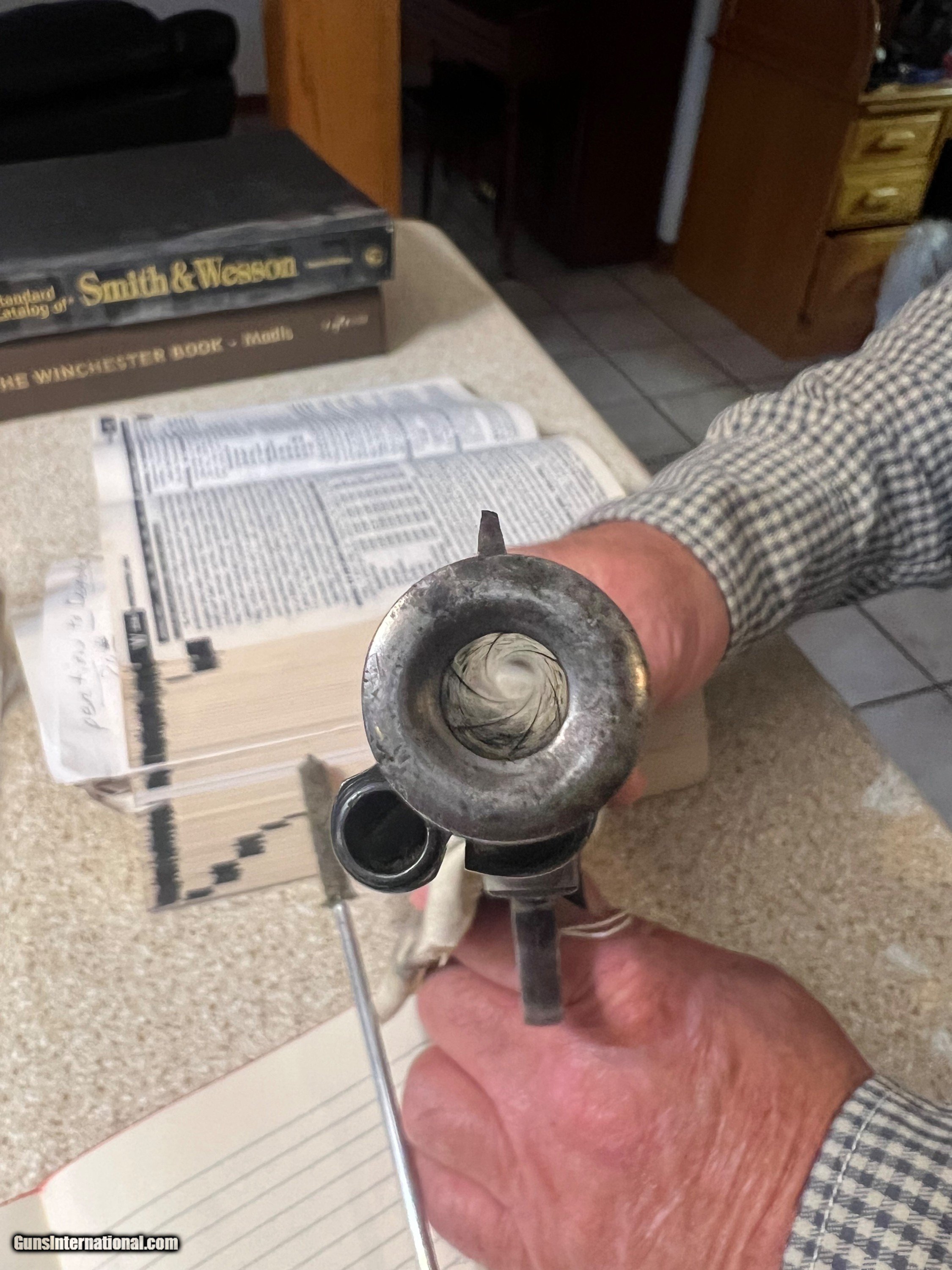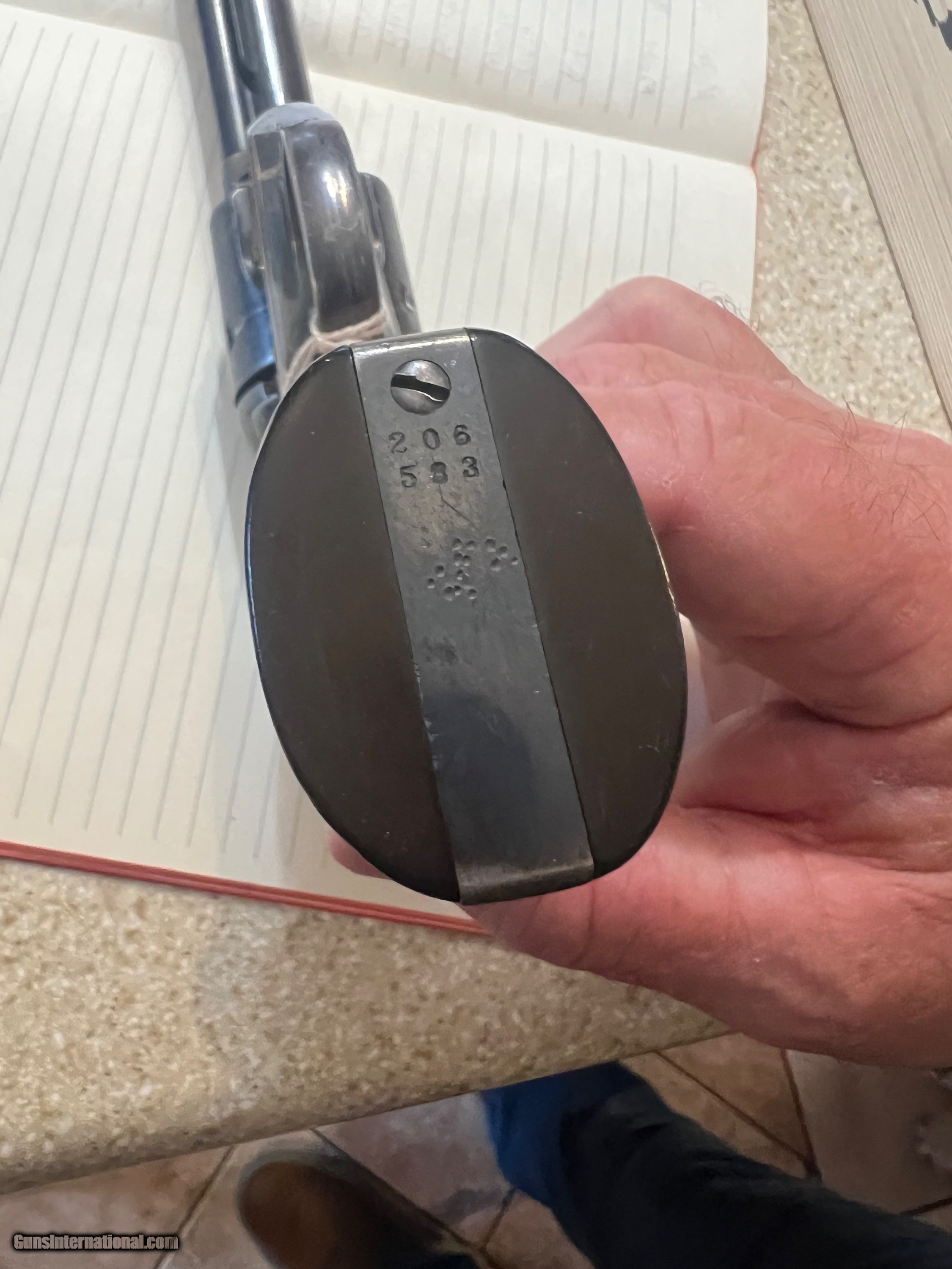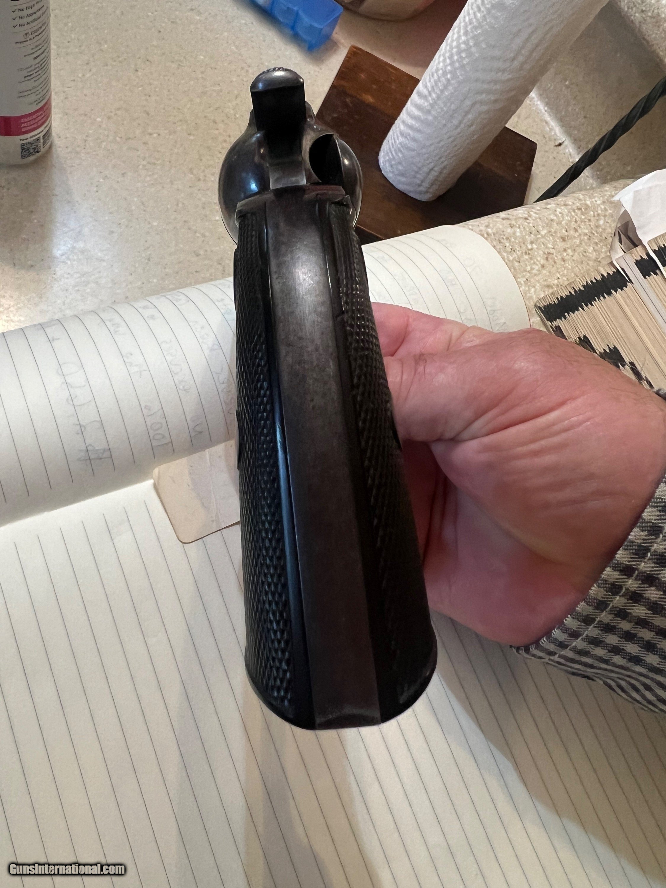 Description: Colt Bisley SAA 5.5in Barrel made in 1901 Original unaltered cell number 606-688-4654 matching serial numbers, matching grips serisl number to the gun Bore is very good 4 clicks nice smooth action mechanically excellent original grips in great condition most wear on front / back strap, been well cared for vivid case coloring still vivid in protected areas Price: $2,450.00 Shipping: $50.00 Buy Now Contact Seller |