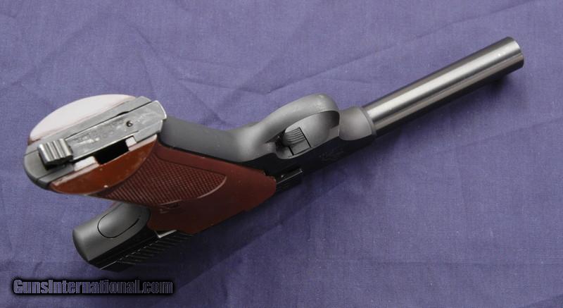 Description: Colt Challenger chambered in .22Lr and manufactured in 1951. This pistol features a 4-1/2” barrel, fixed front sight, dove tailed rear sight, no last shot slid holder, bottom mag release and checkered plastic grips. This is a one owner pistol and looks unfired. It is in amazingly excellent condition with a couple oxidation spots that are shown in the photos. This Colt comes with its original box, cleaning rod, wax paper and instruction booklet. SOLD |