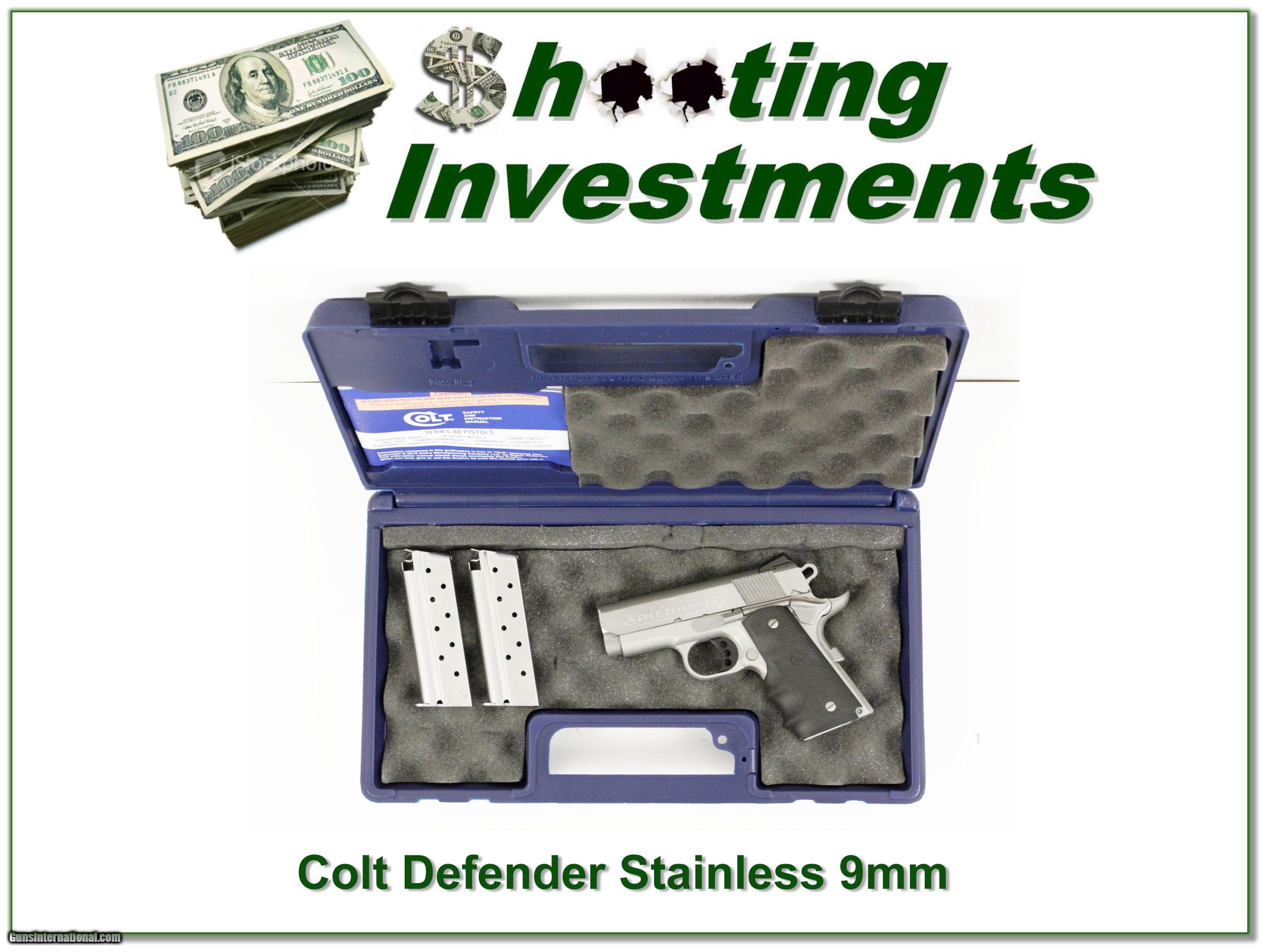 Description: This is an excellent condition Colt Defender. I am sure never fired more than a few rounds. It is a Lightweight Stainless 9mm and comes in original case with all papers and 2 magazines. I am selling this one on consignment and as such lay-a-way can’t be used. It does of course have the standard 3-day inspection. Shipping and insurance is $35. Please email me with any questions or larger pictures. (Consign your quality firearms with Shooting Investments for only 10%! Let me know if you have any you would like to sell!) 17-0711 Payment: Payment is by Money Order, Cashiers Check or Personal Check. I can now also accept MasterCard and Visa with a 3% convenience fee. PayPal can be used for some items but never firearms. Please let us know if you would like to pay via PayPal. Shipping: The shipping charge will be listed in each description. It is $35 for most guns. Some heavy guns or those insured for over $2000 will be higher. Shipments to Alaska and Hawaii are higher because air shipment is required. Most firearms are shipped within 5 days of receipt of payment. We prefer shipping at the beginning of the week to avoid firearms in transit over weekends. We package all shipments carefully and insure them for the full purchase price, rounded up to the next $100. In the unlikely event that damage occurs, it is important that you save all packaging material for the claims process. Optics are shipped Priority Mail and most other non-firearm shipments are shipped First Class. Returns: Our return policy is simple. If for any reason you are not pleased with your purchase, you may return your item for a refund. The only exception is ammunition, it cannot be returned. It is important to us that you are happy. Guns cannot be fired or dissembled before returning them and must be returned in the same condition as received. Notification of a return must occur with-in 3 days of receipt at your dealer. Shipping, convenience and dealer fees are not refundable and are the responsibility of the buyer. Lay-a-way: If needed, we offer a 60 day lay-a-way option on most firearms. It is 1/3 now, 1/3 in 30 days and 1/3 in 60 days. Lay-a-way firearm sales are final. Consigning your firearms with Shooting Investments: We will help you get top dollar for your firearms. While most local guns shops charge 20% or more, our fee is only 10% with a minimum of $50. At your local gun shop it might take months to sell. Selling on-line provides instant access to thousands of interested buyers. You won’t find any other on-line dealer willing to sell your firearms for only 10% or listing every gun on 4 separate s. Selling through an House typically costs the seller 15% and the buyer an addition 15% (so 30%) and you have to wait several months to sell and longer to receive funds. If properly priced, we will sell your firearms in a week or two. Send us an email or give us a call and we’ll explain how easy it is for you to get top dollar. Trading: We collect guns and usually just trade for guns we want to add to our collections. We often sell guns for others wanting to purchase one of ours. We find this the most fair to both of us. Our Commission is only 10% and we hold the gun you want until yours sells. Please contact us if you want to sell one of yours to buy one of ours. Help for California Buyers: We are happy to ship to California. It is the buyer’s responsibility to make sure any item you buy is legal in your state. We are also happy to help with your purchase of a firearm from someone other than us. If you see a gun you would like to buy but the seller can’t or won’t ship to California we can help. You buy the gun and have it shipped to us. We’ll then ship it to your California dealer. The cost for this service is only $30 + shipping. Let me know if we can help! SOLD |