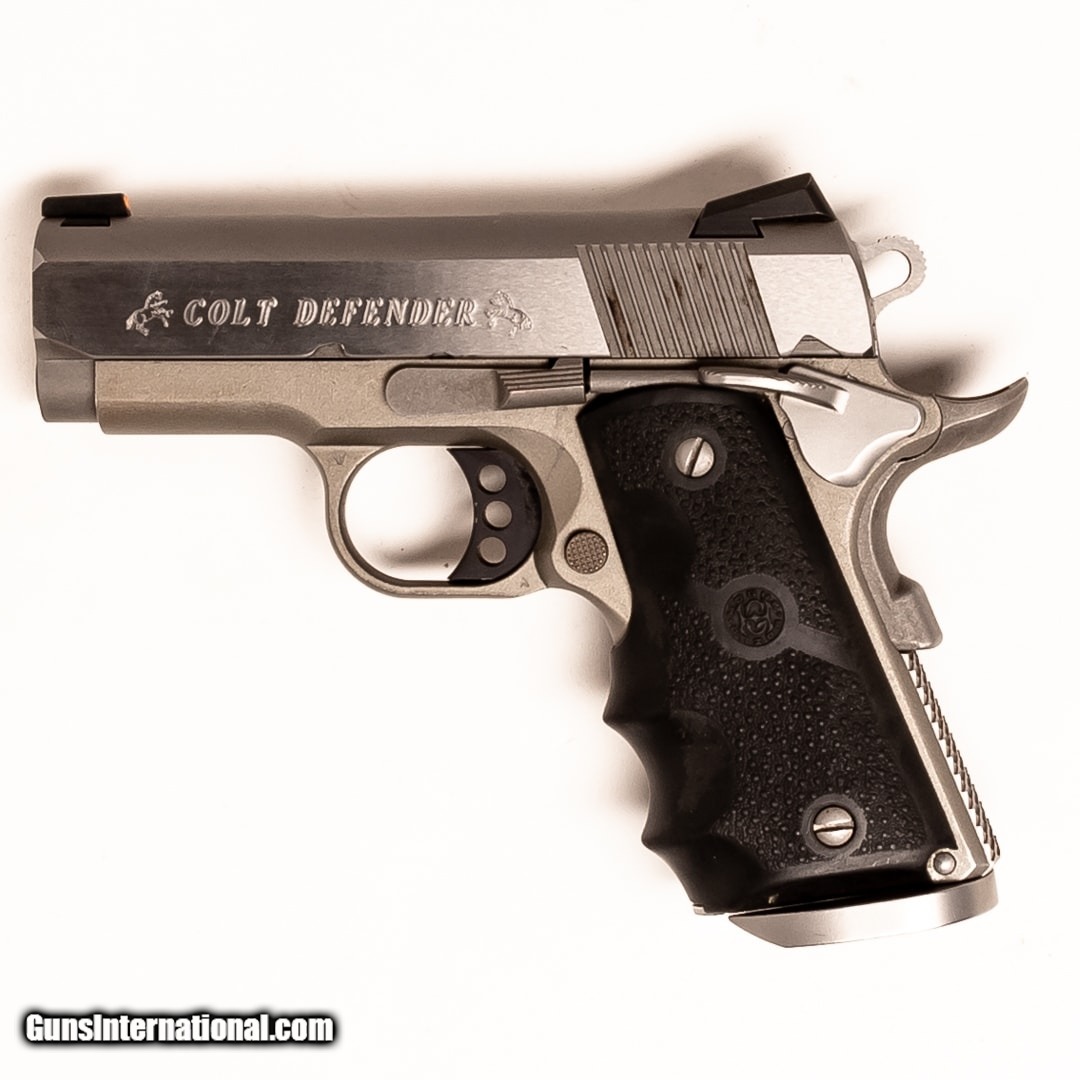 Description: Guns Listing ID: 635517 The Colt Defender Lightweight is a pistol that‚‚s perfect for concealed carry, as it is powerful and easy to conceal. It also maintains the ergonomics, controls, and performance that made the 1911 legendary in the first place. This Defender Lightweight has been upgraded with an Ed Brown drop-in magazine well with snakeskin back strap, Ed Brown hammer spring, Ed Brown ambidextrous safety, and an EGW guide rod kit (some original parts included). Purchase includes two 7-round Colt OEM magazines, four 7-round Wilson Combat magazines, two left-handed holsters, and two Kydex magazine pouches SOLD Manufacturer: COLT Model: DEFENDER Caliber Info: .45 ACP Condition: Used - Certified Barrels: 3 barrel Finish: STAINLESS |