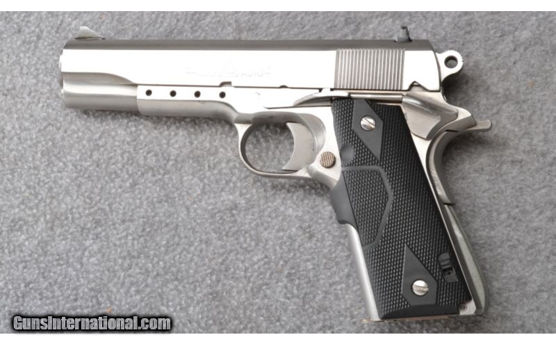 Description: Forward portion of frame is drilled for a scope mount. Metal shows a few light use marks. Bore is excellent. Fitted with Crimson Trace laser grips. No box. SOLD Manufacturer: S/N DS10XXX Caliber Info: 10 MM Auto Metal Condition: Very Good Bore Condition: Excellent Barrels: 5" Stainless Triggers: Factory Stock: Crimson Trace Laser Grips Weight: 40 OZ Sights: Ramp Front - Notch Rear Item Location: Wheeling, WV |