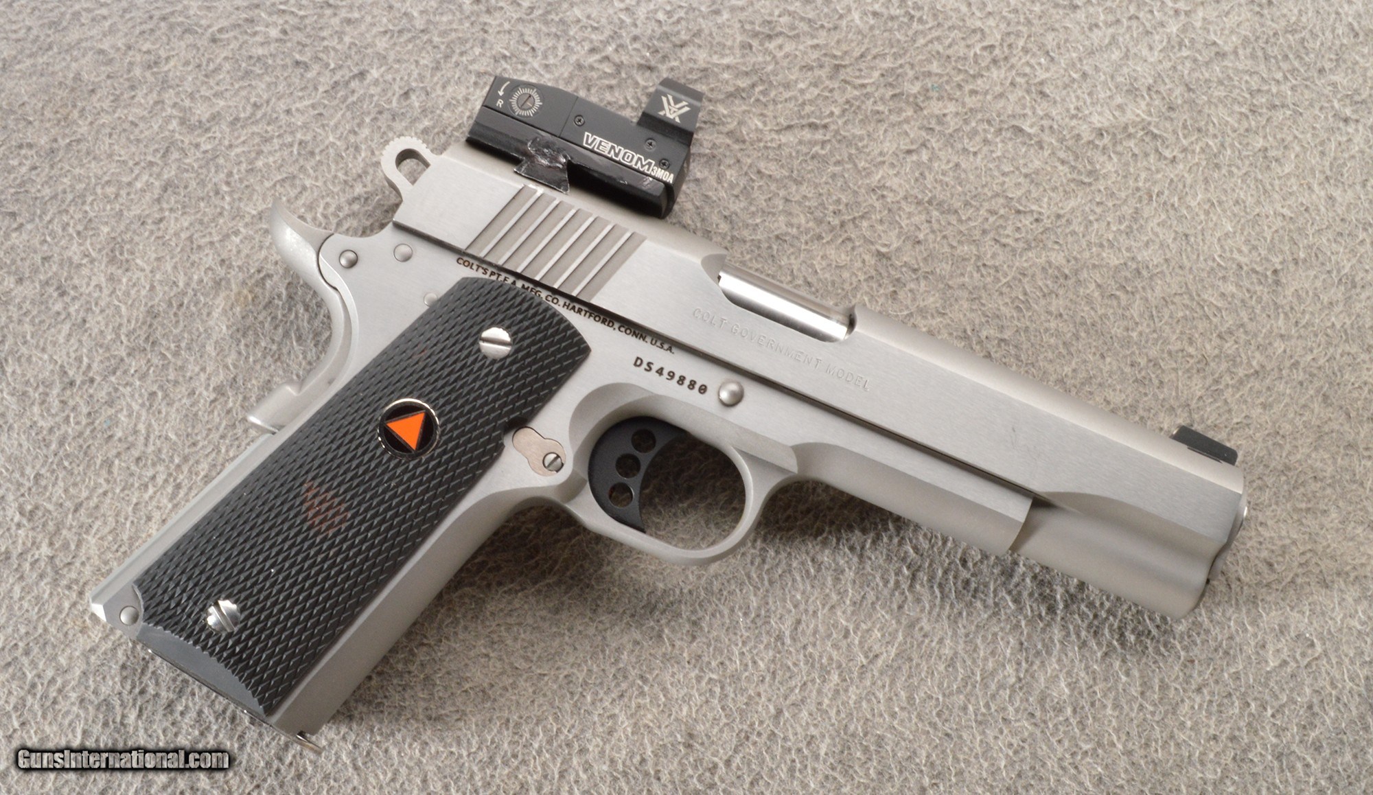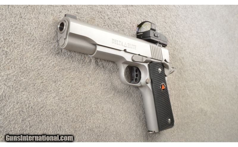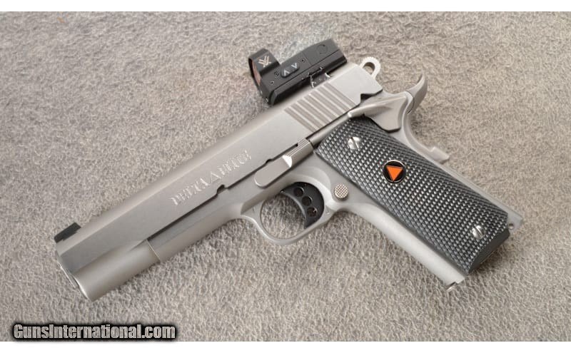 Description: Colt Delta Elite in overall excellent condition showing light signs of use. The left side of the slide is marked "DELTA ELITE", the right is marked "COLT GOVERNMENT MODEL". The right of the frame is marked "COLT'S PT. F.A. MFG. CO. HARTFORD, CONN. U.S.A." with the serial number "DS49880". The barrel is marked "-CAL. 10MM AUTO-". The front sight is a dovetailed white dot blade. The rear sight is Vortex Venom red dot on a dovetailed mount. The grips are textured black synthetic panels with the red Delta medallions. Comes with a soft Bulldog case. 10mm Auto Chambers: Semi auto. Metal Condition: Rates about 98%-99% reaming. This firearm shows a few fine / faint scratches in the brushed finish on the left side of frame and both sides of the slide. Wood Condition: The grips remain in excellent condition with no visible marks. Bore Condition: Bright bore with sharp rifling. Triggers: Single action trigger. Sights: A red dot with a front sight. Item Location: Owatonna, MN Price: $1,199.99 Contact Seller |