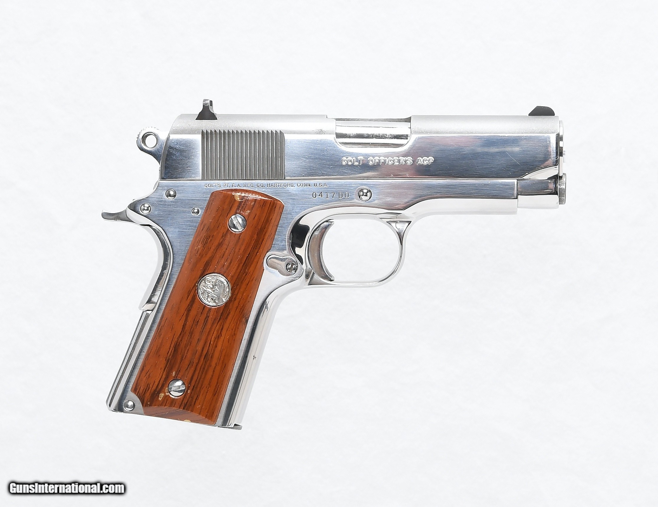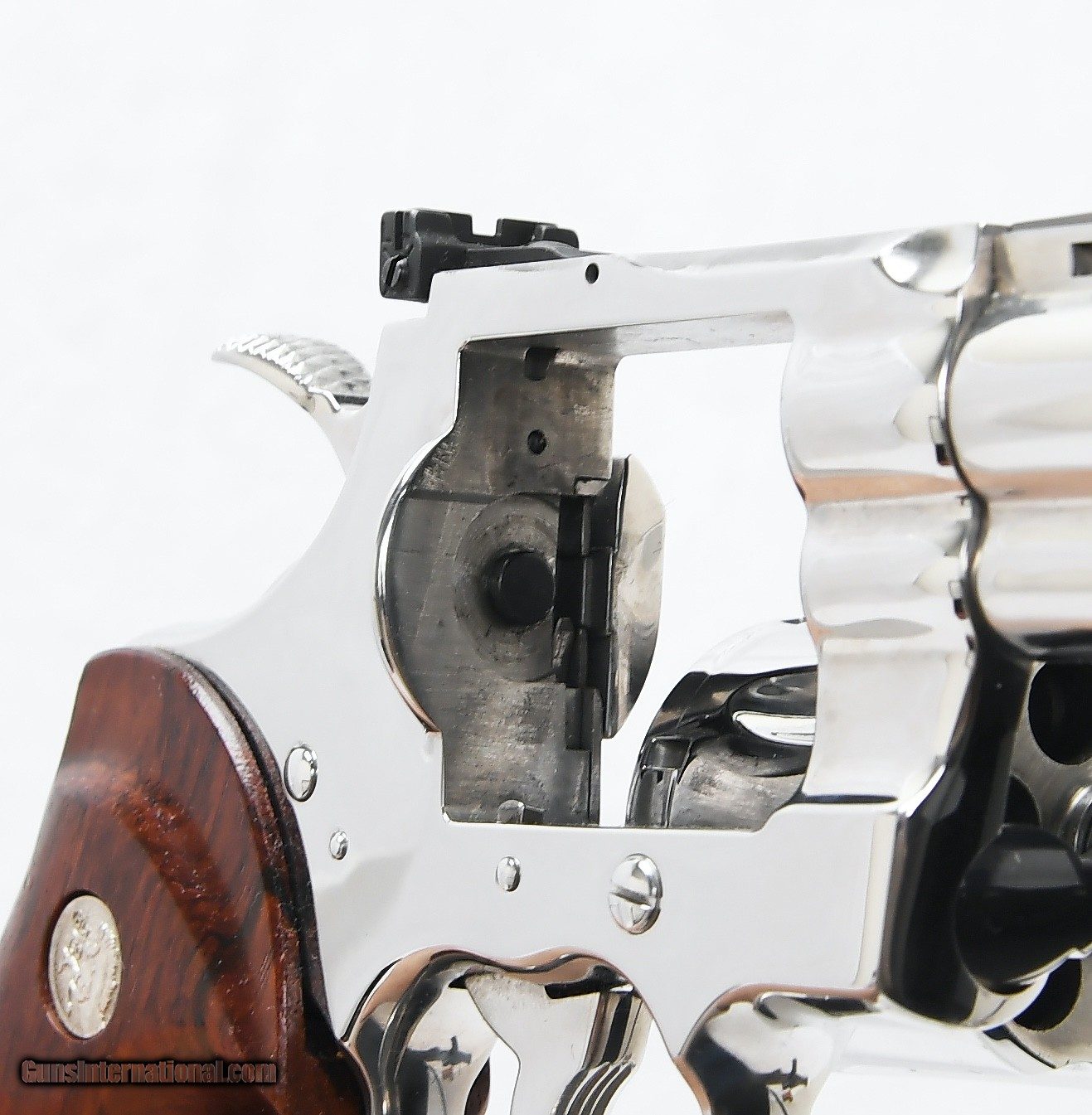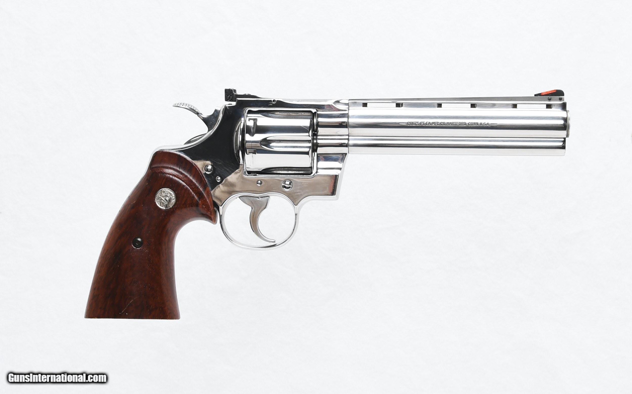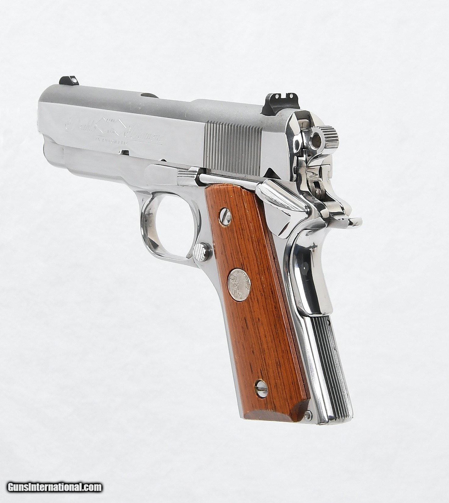 Description: Colt Double Diamond Set. 6” barreled bright stainless-steel Python and a bright stainless-steel 1911 Commander. Both guns are engraved with the Double Diamond logo and they are serial numbered: DD 0417 for the Python and 0417 DD for the Commander. This set is new and unfired but not perfect! The have sat in the factory display case and consequently there is a very, very small spot of pitting on the top, right behind the ejection port on the Commander and some other extremely small handling marks are both guns. Also, there is a “ding” or two on the grips on both handguns. Otherwise these present beautifully and they are a very collectible pair of guns. There are no boxes with this set. $6,200.00 SN: DD0417 & 0417DD SOLD |