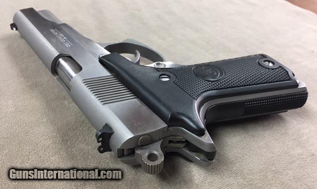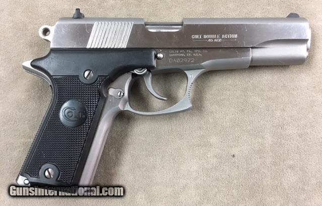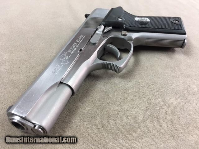 Description: REDUCED - This a full size Colt Stainless Steel Double Eagle 45acp Pistol, the only DA/SA variant ever manufactured by Colt. This gun has not seen much use at all spending most of its time in a nightstand. Bore and chamber are perfect, original Colt stainless magazine. There are some very light handling marks on the polished areas of the pistol which can easily be removed if desired. These handling marks some may call light scratches but in reality they are not scratches - just handling marks, and easily removed. SOLD |