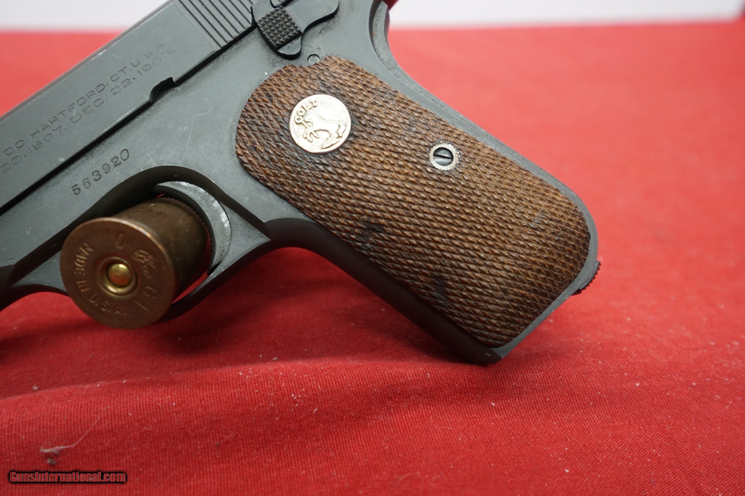 Description: Another great item from Gainesville Pawn! Up for sale is a Colt General Officer pistol.1903 pocket hammerless. U.S. Property marked. This gun is chambered in 32 auto. This gun is in Very good condition overall, with few signs of wear. This gun was manufactured in 1942. Please see photos attached *Please be aware that all items are sold “AS IS”. Ask questions BEFORE buying. Feel free to call us at our store (352) 240-6452(Gainesville pawn), (352) 339-4780 (owner immediate) or email us at Gainesvillepawngmail with ANY questions. We do not accept trades or offers through through Guns International We only entertain trades and offers through our store. $35 shipping and handling. Insurance extra. We only accept USPS money orders and major credit cards for payment. 3% convenience fee for credit cards. WE collect Florida state sales tax for in state sales. Please be aware that this item is for sale in our store as well as the occasional gun show so it may be sold there at any time. We will not ship the item until you have your dealer/receiving store email us a signed copy of their FFL to gainesvillepawn()gmail() SOLD Curio/Relic: Yes Handgun Caliber: .32 ACP (7.65x17mm Browning SR) Manufacturer: Colt Model: 1903 Serial Number: 563920 Barrel Length: 4 inches Condition: Very good Metal Condition: Very good Wood Condition: Very good Bore Condition: Excellent |