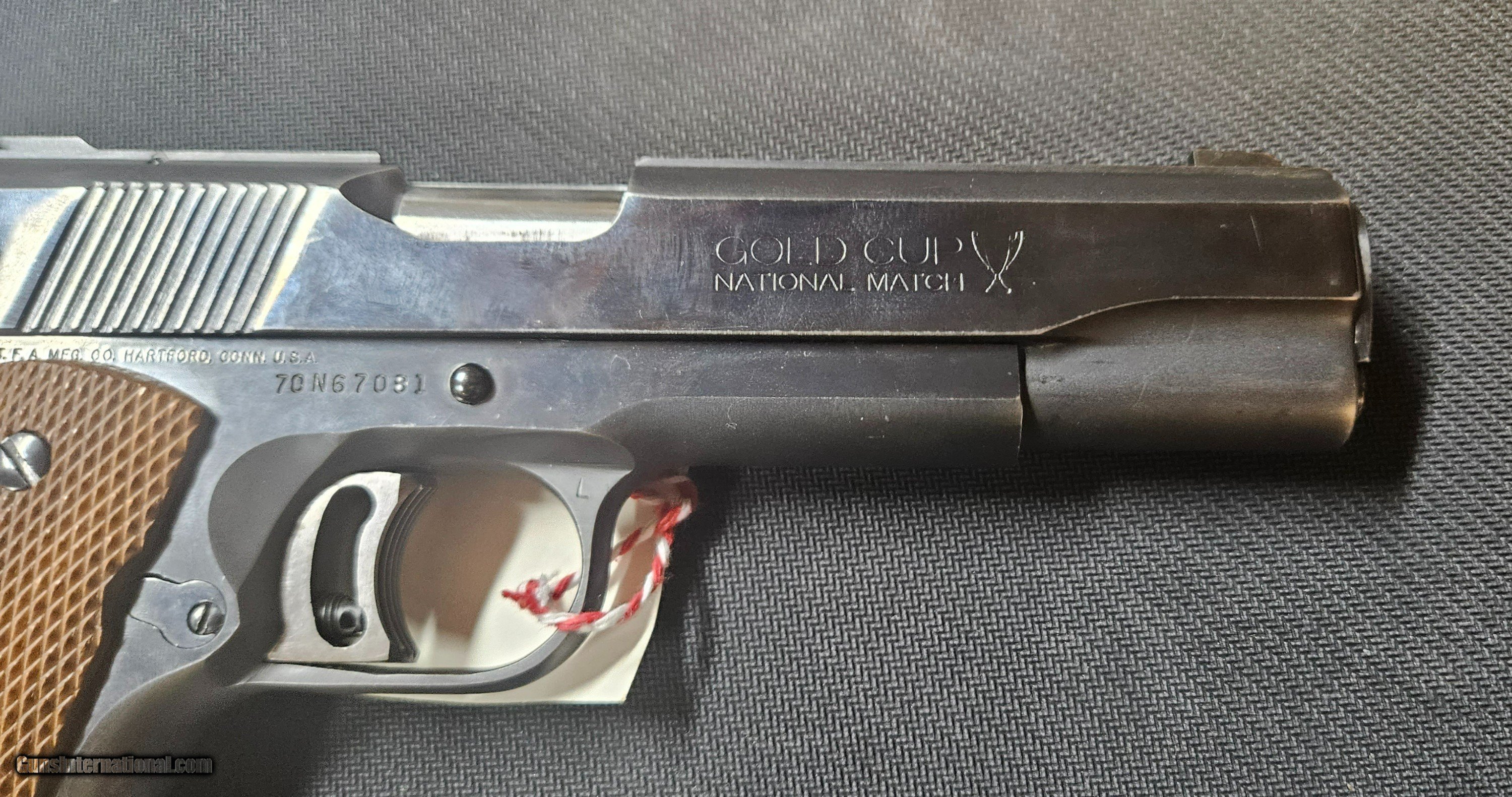 Description: Series 70 Colt Gold Cup National Match 45 ACP Blue MFG 1979 All Original SOLD Handgun Caliber: .45 ACP (.45 Auto) Manufacturer: Colt Model: Gold Cup Serial Number: 70N67081 Barrel Length: 5 Condition: good |