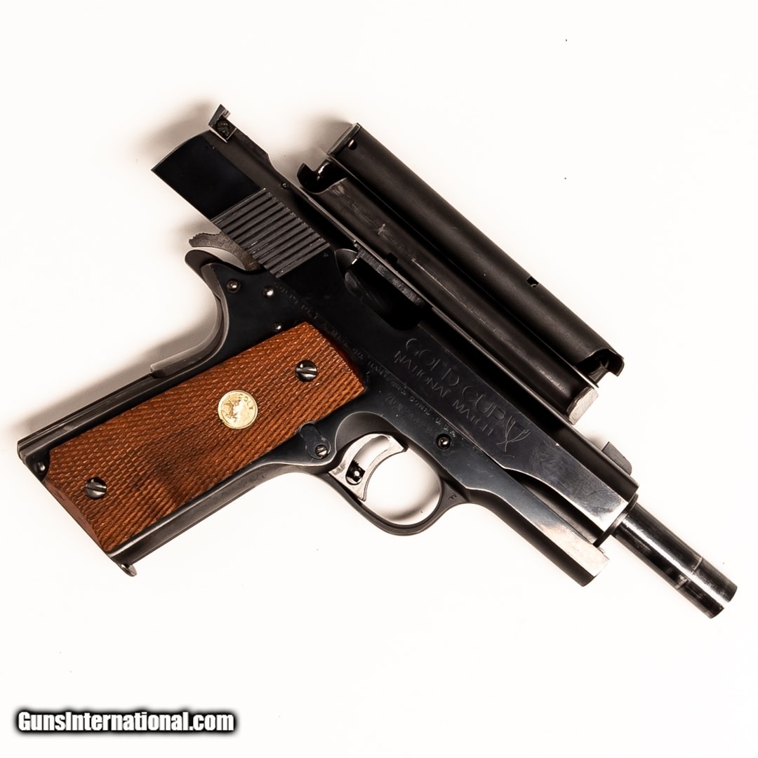 Description: Guns Listing ID: 619589 Known as the finest shooting semi-automatic in the world, the Colt Gold Cup National Match was originally designed in the 1950‚‚s to give competition shooters the edge. With target sights, a match grade barrel, adjustable wide trigger, and a tighter lock up, this handgun lives up to its legendary name. 3-7 round magazines and a manual are included. There is some finish wear on the frame. Serial number: 70N24428 MFG: 197 SOLD Manufacturer: COLT Model: GOLD CUP NATIONAL MATCH Caliber Info: .45 ACP Condition: Used - Certified Barrels: 5 BARREL Finish: BLUE |