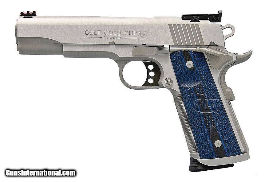Description: BRAND NEW IN THE BOX AND READY TO SHIP! BUY IT NOW!! Manufacturer: Colt's Manufacturing Co. Model: Gold Cup Trophy SKU: O5073XE Caliber: .38 Super Capacity: (2) 9 Round Magazines Barrel: 5" National Match, Polished Stainless Steel Finish: Brushed Stainless Steel Overall Length: 8.5" Sights: Adjustable Rear, Novak Fiber Optic Front Grips: G10 Checkered Blue with Scallop Weight: 40 oz The Colt Gold Cup® Trophy has been reborn as the ultimate choice for the modern competitor. True to its legacy, the redesigned Gold Cup® starts with the features that seasoned shooters want: competition ergonomics, adjustable rear sight, and those stunning Colt competition-blue G10 grips. On top of that, the Gold Cup Trophy adds 25LPI checkering on the front and rear of the frame and an extended magwell for lightning-fast reloads. For the weekend warrior or the full-time competitive shooter, there really is no other option. KNOW YOUR LOCAL AND STATE LAWS!! ORDERS WILL ONLY BE ACCEPTED FROM US RESIDENTS OF THE LOWER 48 STATES, ALASKA AND HAWAII. OUR FFL CLASS DOES NOT ALLOW FOR THE EXPORT OF FIREARMS, THEREFORE WE CANNOT SHIP OUT OF THE US. IF YOU ARE INTERESTED IN PURCHASING THIS ITEM, PLEASE COMPLETE YOUR ORDER BY REFERRING TO THE "SELLER'S INFORMATION" ABOVE. SOLD |
