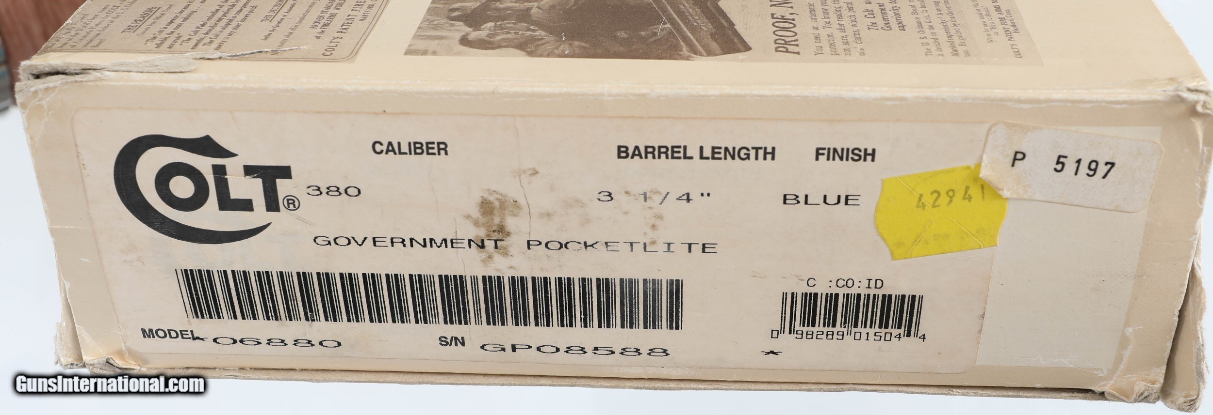 SOLD Manufacturer: COLT Model: GOV'T POCKETLITE Serial Number: GP0XX58 Barrel Length: 3 1/4 Caliber Info: 380 ACP Condition: EXCELLENT |