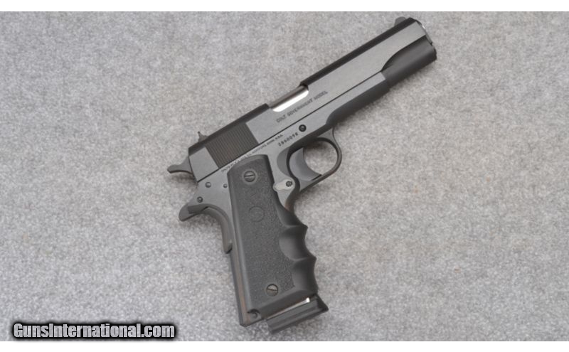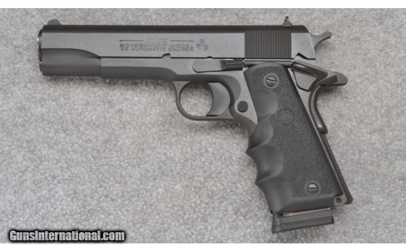 Description: Excellent throughout complete with Hogue grips and non-original magazine. No box. SOLD Manufacturer: S/N 286XXXX Caliber Info: .45 ACP Metal Condition: Excellent Bore Condition: Excellent Barrels: 5 Triggers: Factory - Non-Adjustable Stock: Hogue Black Rubber Grips Weight: 40 OZ Sights: Ramp Front - Notch Rear - Three Dot System Item Location: Wheeling, WV |