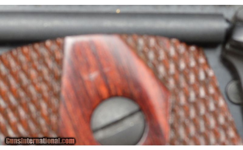 Description: This Colt 1911 is in very good to excellent condition. There is light wear to the slide and frame including an "idiot" scratch. The wood grips show light wear. The action is smooth with a clean bore and strong rifling. Includes two magazines. 9mm Luger SOLD Metal Condition: Very good Wood Condition: Excellent Bore Condition: Excellent Barrels: 5 Triggers: SAO Weight: 2.40 lbs. Sights: Fixed three-dot Item Location: Gainesville, VA |