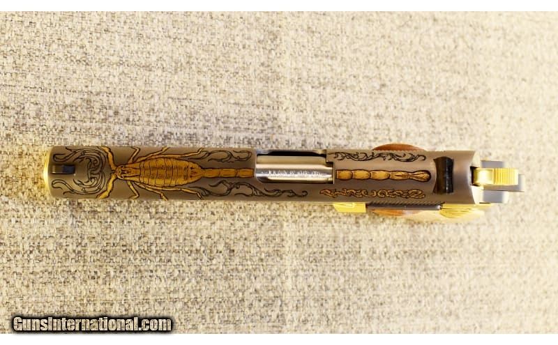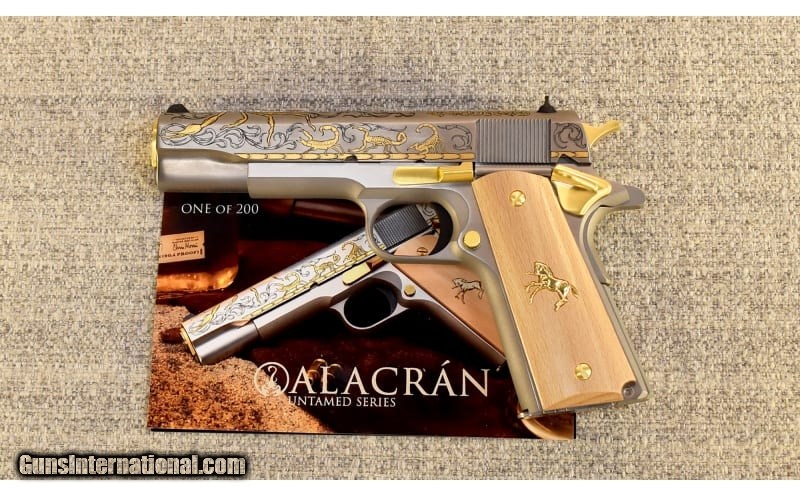 Description: This is a factory direct, limited edition from SK Customs, Colt Government Model in .38 Super, the Alacran, part of the Untamed Series of the world's deadliest predators, number 134 of 200. .38 Super SOLD Metal Condition: As new in box Wood Condition: As new in box Bore Condition: Clean with bright lands Barrels: 5 Triggers: SA Butt Pad: Beech wood grips Weight: 2 Lbs. 6 Oz. Sights: "Blade front, U-notch rear Item Location: Glendale, AZ |