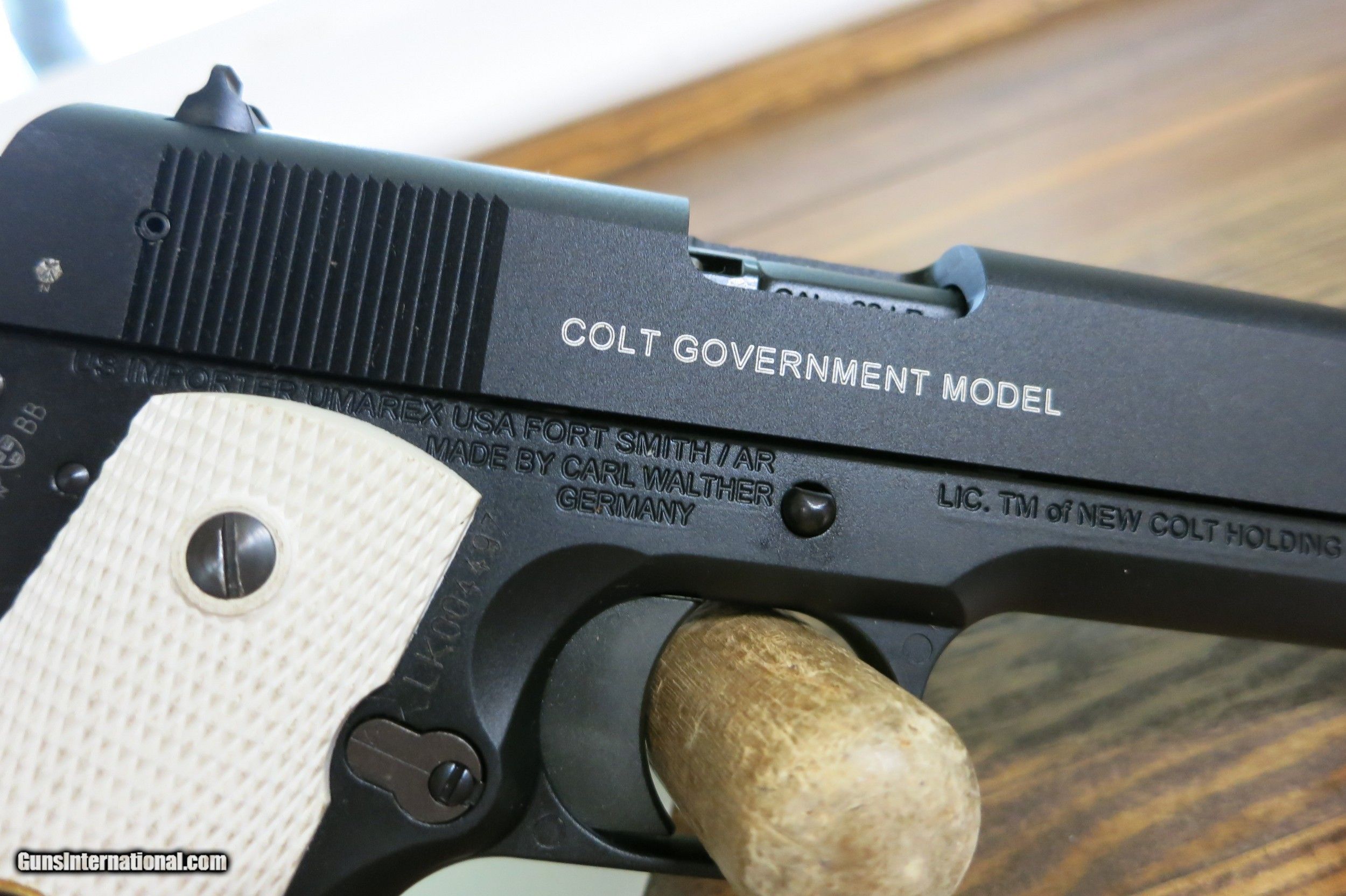 Description: COLT GOVERNMENT MODEL .22 LR. ABOUT PERFECT CONDITION. MADE BY WALTHER OF GERMANY. SN LKOO449. HAS USMC EMBLEM IN GRIPS. DON'T BELIEVE IT'S EVER BEEN FIRED. CALL OR E-MAIL WITH QUESTIONS: SOLD |