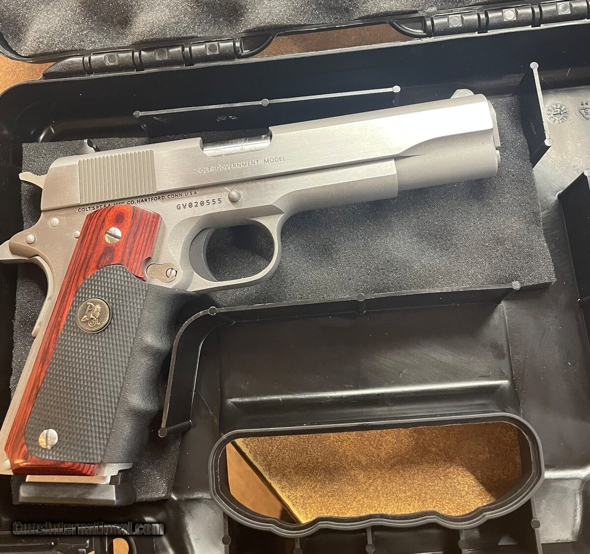 Description: Guns Listing ID: 792963 AFTER MARKET GRIPS INSTALLED. COMES WITH A BOX (BERETTA BOX, NOT COLT) SOLD Manufacturer: COLT Model: GOVERNMENT Caliber Info: .45 ACP Condition: Used - Non-Certified Barrels: 5 BARREL Finish: STAINLESS |