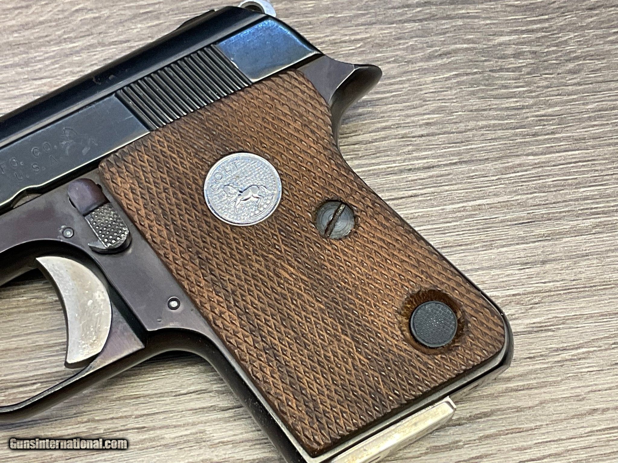 Description: Guns Listing ID: 593301 Super Clean Colt Junior 25 ACP, SN OD61004. Gun is in great shape with only minor signs of wear. Made in the USA in 1972 SOLD Manufacturer: COLT Model: Junior 25 Caliber Info: .25 ACP Condition: Used - Non-Certified Barrels: 2" BARREL Action: SEMI AUTOMATIC Finish: blue |