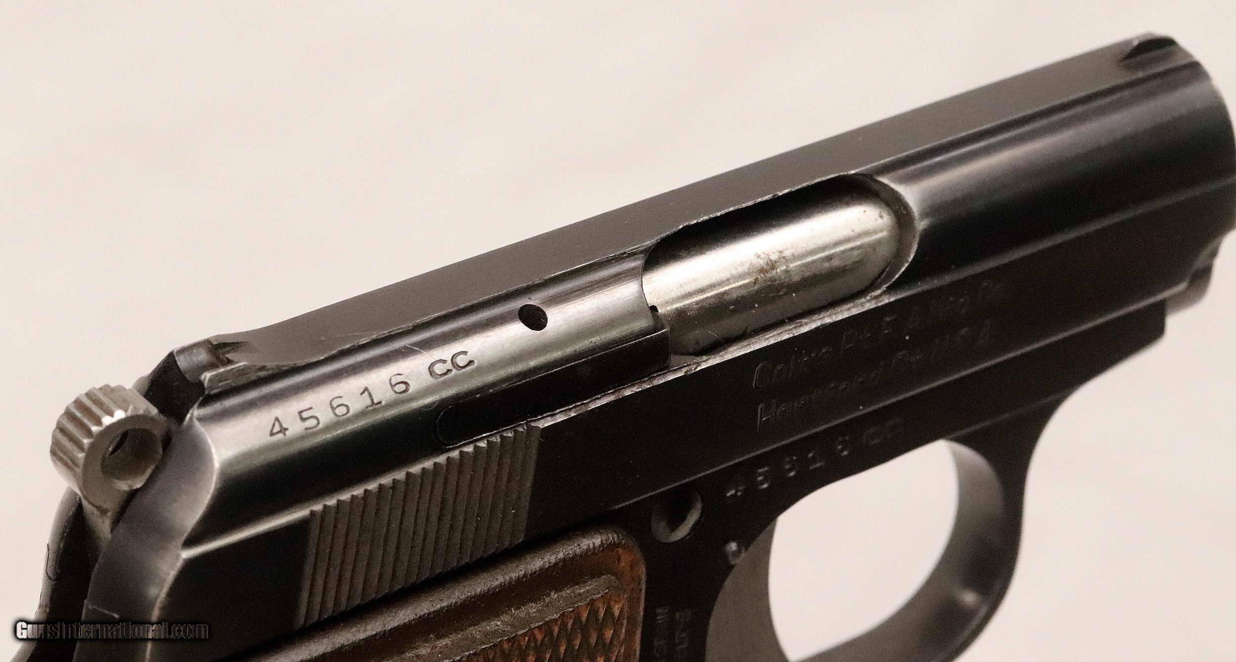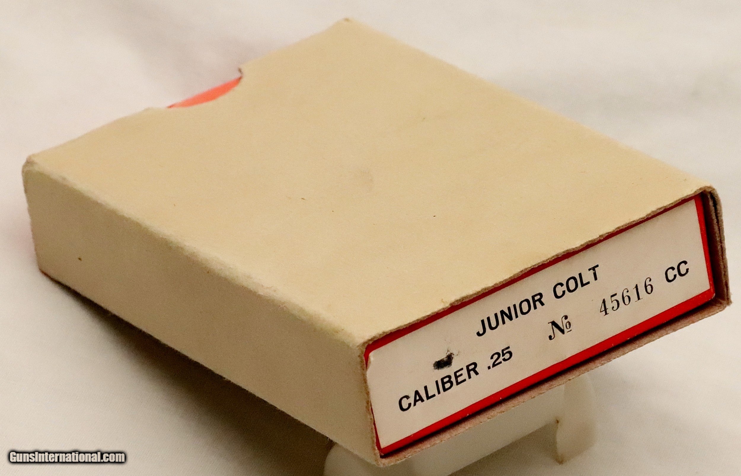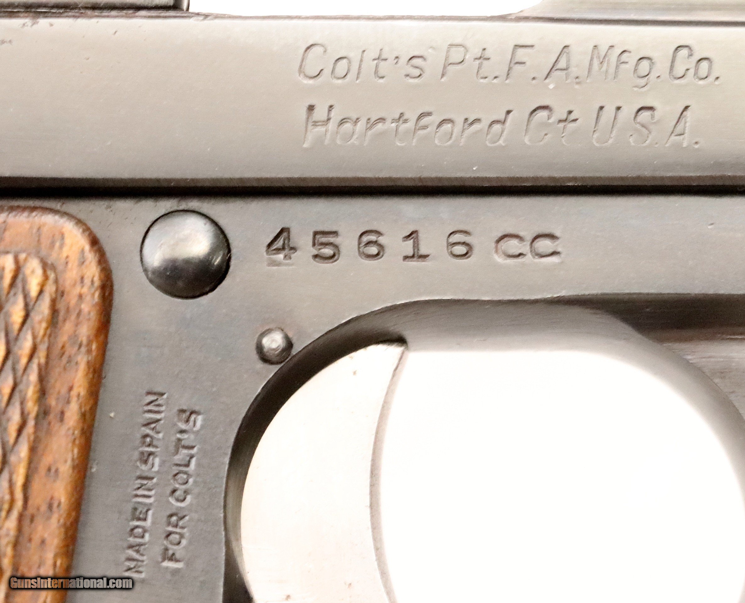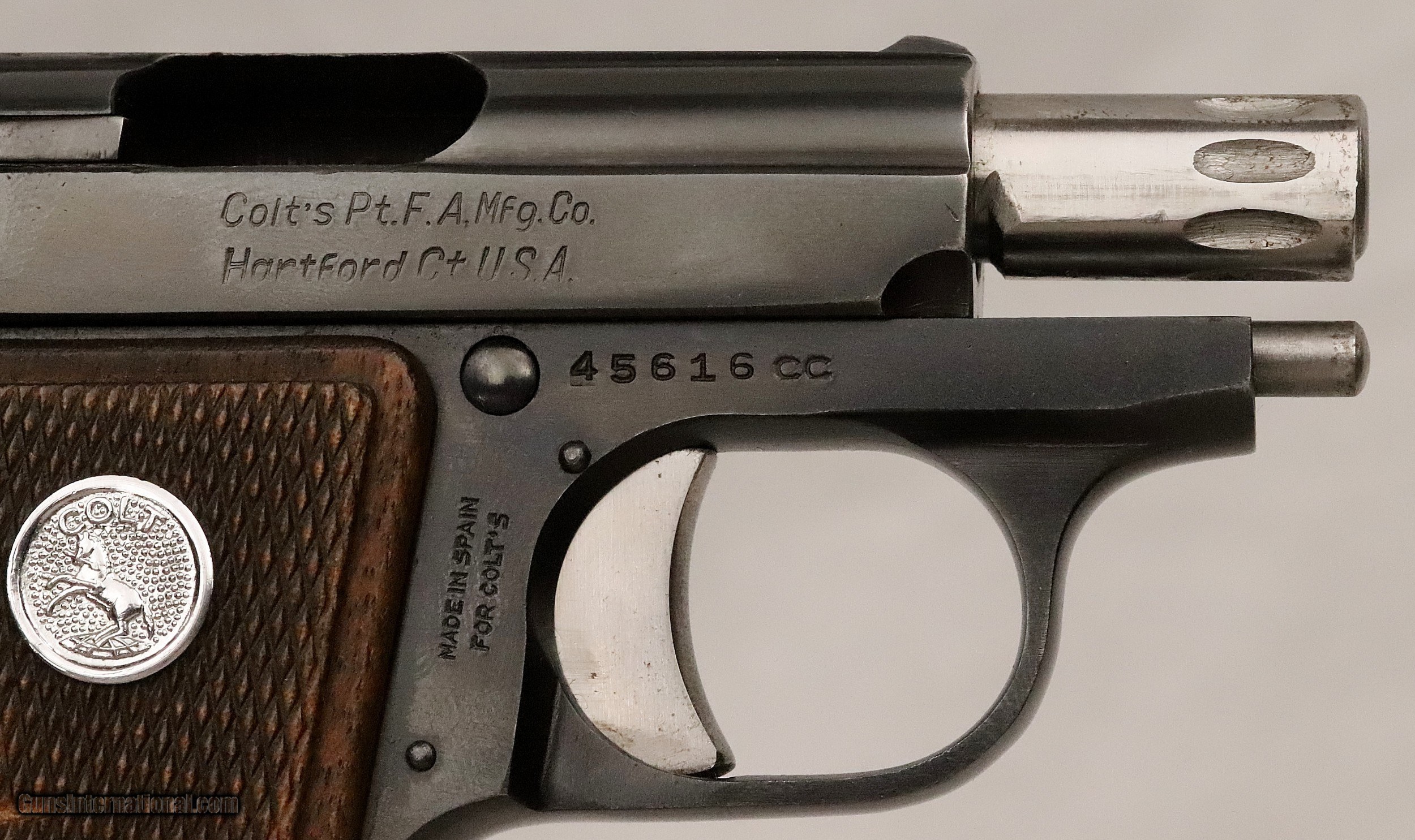Description: SOLD..............................................This Colt Junior was manufactured in Spain under contract from Colt’s. It was manufactured in 1963 (59 Years Ago) and remains in excellent condition. It is fully functional and has an Exc. bore. (Perhaps Unfired) It has survived with its original box & sleeve, 2 Mags. and Cleaning Rod. This is an interesting variation for a Colt Collection. .25 ACP Caliber with a 2 ½” barrel. Serial number 45616 cc. FFL or C&R required. Beaver Creek Arms TERMS & CONDITIONS Objective: As a collector of 35 years and Licensed Firearms Dealer since 1989 I have a clear definition of a satisfactory transaction. I will be paid as we agreed to, and you will be satisfied with your purchase. My goal is to establish a client list of satisfied repeat customers who will recommend me to other collectors. It’s just that simple. Exiled Saudi princes with secret funds needing change from an over paid purchase need not apply. Notice: ALL Federal, State, & Local firearms laws will be followed. I will take NO shortcuts in the process of a legal sale or transfer, so please don’t ask. SHIPPING: Normally shipments are made via U.S.P.S. Priority Mail, Insured, with Signature required. Typical Packing, Shipping and Insurance cost for a handgun is $30.00. Checks to be made out to: Steve Clark Mailed to: 380 Beaver Creek Rd. Dillsburg PA 17019 FIREARMS: Modern firearms, post 1898, can only be shipped to a Type 01 Federal Firearms License address. Curio-Relic firearms, as defined by the BATF list, can usually be shipped to a Type 03 Collectors License address. Some states have additional restrictions such as CA, CT, DC, IL, NJ and NY. A signed valid FFL license copy either mailed or emailed will be required for shipment to only the license address. Antique firearms, pre 1898 do not require a Federal License. For purchase, a copy of a Government Issued Identification (Drivers License, Etc), showing date of birth and current address will be required. GUARANTEE: Your complete satisfaction is assured, see objective above. If you are not satisfied, please contact me within 3 days of receipt. Please don’t fire the weapon, safety, function and accuracy are NOT Guaranteed. Any weapon offered by Beaver Creek Arms is never test fired nor is there any representation the gun is functional and safe to fire. These guns are sold for collectors and only represented as used firearms that must be checked by a competent person, observe all the necessary safety precautions prior to attempting to load and fire one of these weapons RETURNS: Returns must be made within 3 days of receipt. They must be received in exactly the same condition with no parts exchanged. If it has been altered, damaged, or fired, a refund will not be made. Packing, shipping and insurance cost will not be refunded. All layaway purchases are returnable for merchandise credit only. PAYMENT: Bank check, Personal check, and Money Orders are preferred. Visa and MasterCard are accepted with a 3% processing fee. For Visa and MasterCard orders please provide the account number, code number, expiration date, name on card, phone number and card billing address. This information can be phoned in, or E-Mailed. All orders must be paid in advance, C.O.D. orders are not accepted. Checks, both Bank and Personal must clear before the order will be shipped, usually a 2 week delay. SALES TAX: Pennsylvania state sales tax is 6% for in state purchases. The payment of other states sales tax, if applicable, for shipped items is the buyers responsibility. DISCREET: Client information will remain Confidential. Your privacy is protected. . SOLD Curio/Relic: Yes |