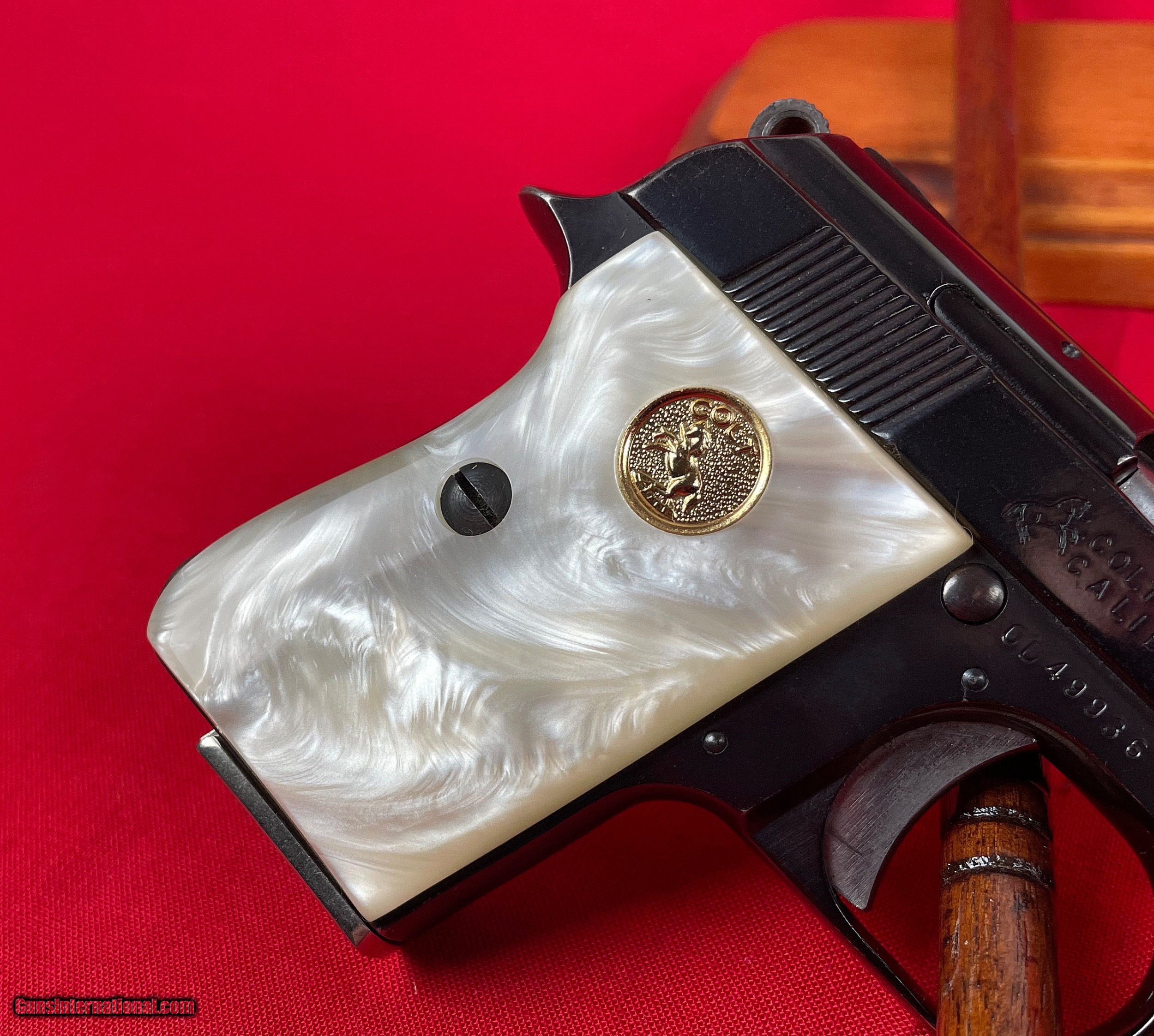 Description: Colt Junior Pistol Caliber 25ACP Excellent condition Made in 1972, final production year Colt factory pearl grips Very tight action, no mechanical wear One Colt factory magazine Ships to FFL only All firearms should be checked by a gunsmith Call or text Paul at 601-397-8054 Please see all my listings SOLD Handgun Caliber: .25 ACP (6.35mm Browning, 6.35×16mmSR) |