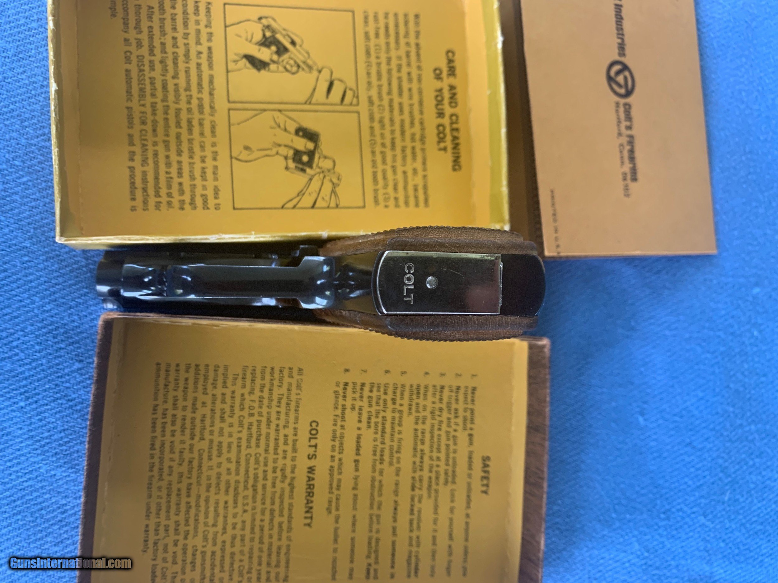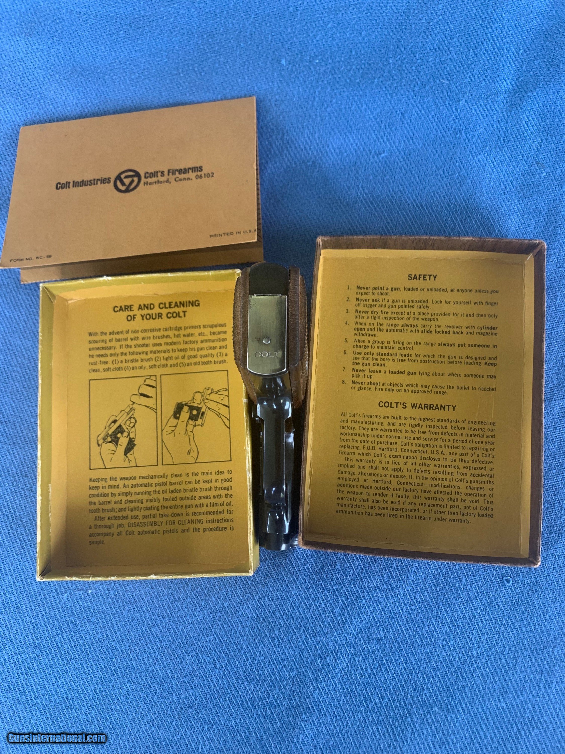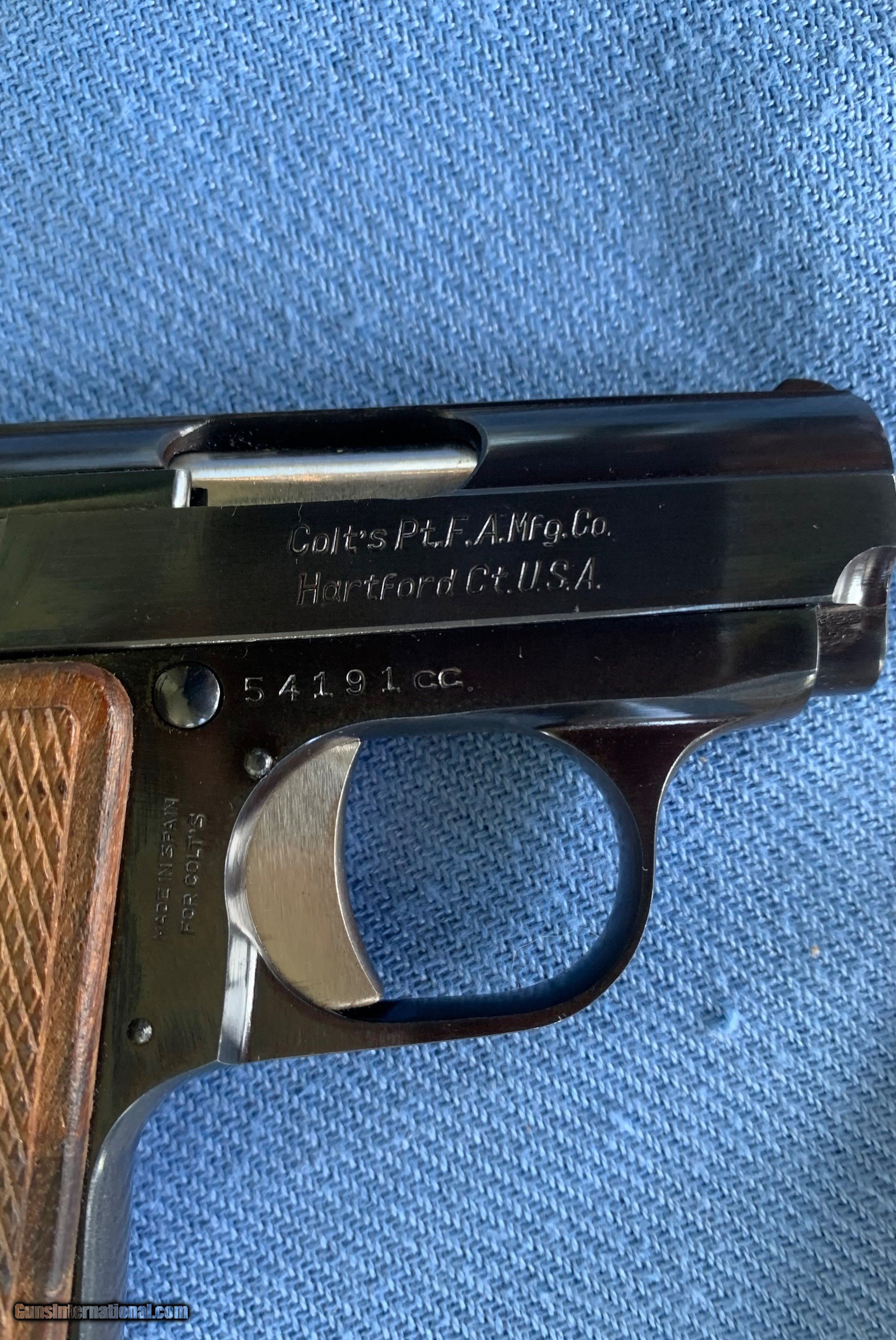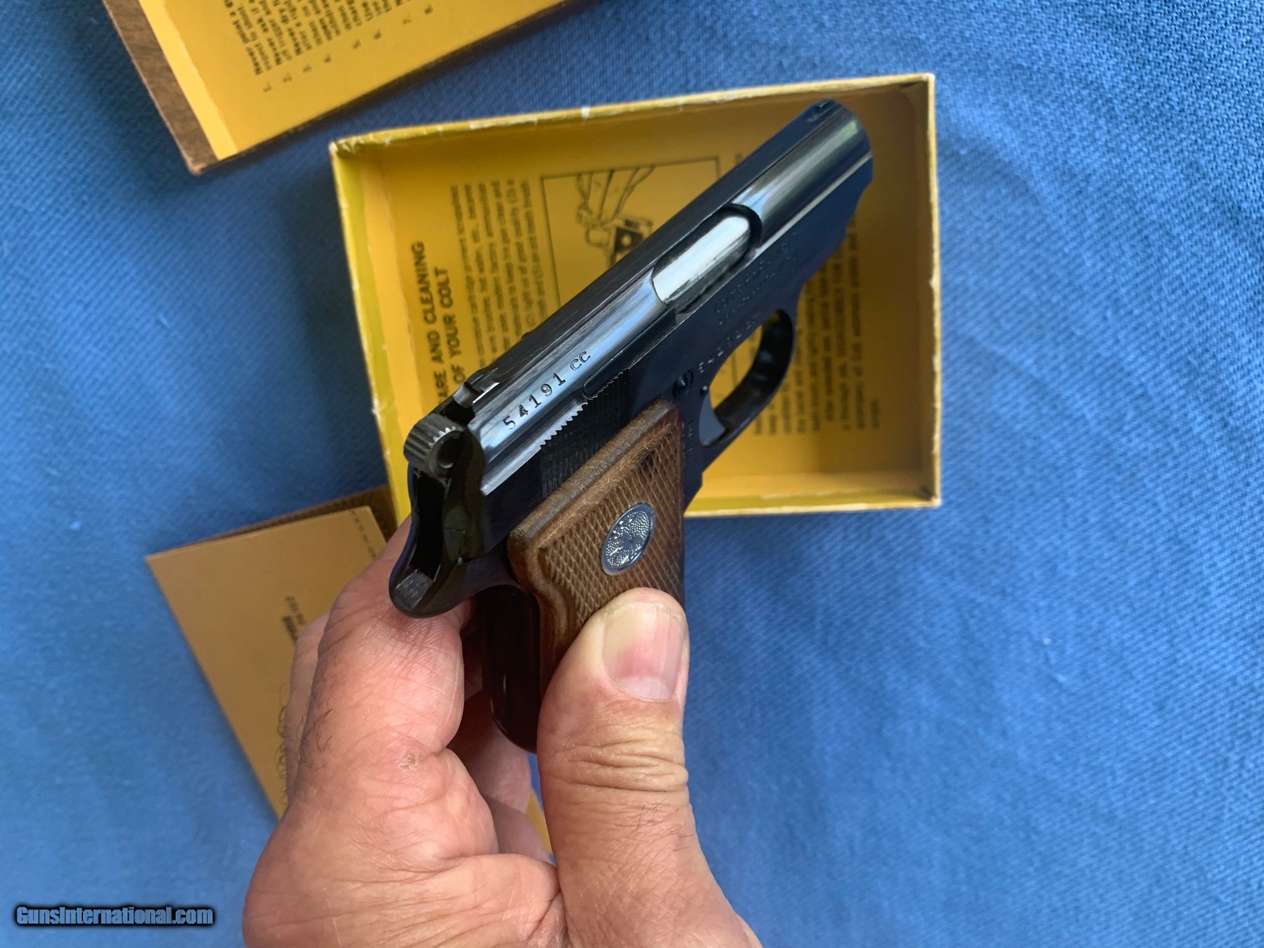 Description: Stunning Example of a Colt Junior in 22 auto . " 22 short only "Interesting gun is stamped " Made in Spain For Colts! Serial number 54191CC . Gun is like new condition ! Comes with one mag , original box and paperwork! Gun has all of it's Bright Blue Finish. Bore and mechanics are like new condition. Gun is unused ! 100 percent original ! Never seen one of these Colt Juniors marked made in Spain for colt . Maybe a rare example ! Please review my photos and please email me with any questions ? 3 day inspection as allways! Thank you for looking, Little Jo SOLD Curio/Relic: Yes Handgun Caliber: .22 Short Manufacturer: Colt Model: Junior Serial Number: 54191cc Condition: Mint |