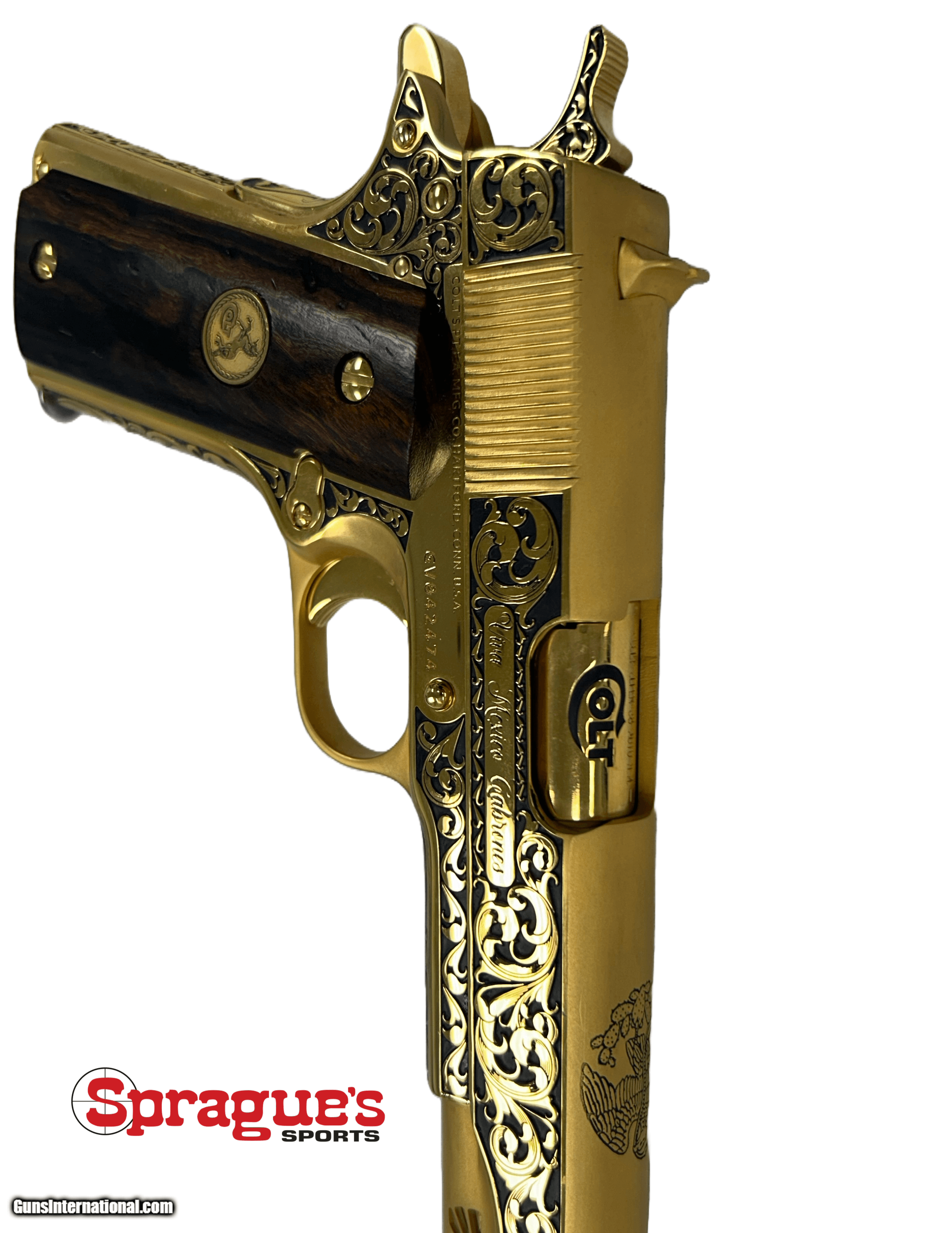 Colt "La Patria" custom one of a kind fully engraved 1911 in .38 Super in gold