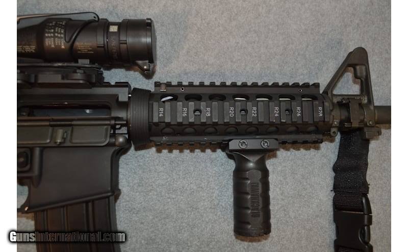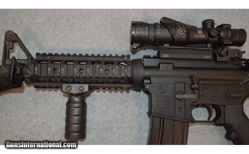 Description: We are pleased to offer this very nice Colt M4A1 AR-15 chambered in 5.56 NATO. Overall it is graded as Very Good Condition and comes with lots of extras: Fixed sights, Trijicon ACOG optic, multiple rails, pistol grip, sling and flash hider. This is a classic Colt and suitable for collectors or shooters. It is priced to sell - come by, call us or order online today - this Colt M4A1 will be gone soon. 5.56 NATO Metal Condition: Very Good Bore Condition: Very Good Barrels: 16 Triggers: Smooth Faced Weight: 9 lbs. 4 oz. Sights: Fixed & Trijicon ACOG Item Location: Louisville, KY Price: $2,499.99 Contact Seller |