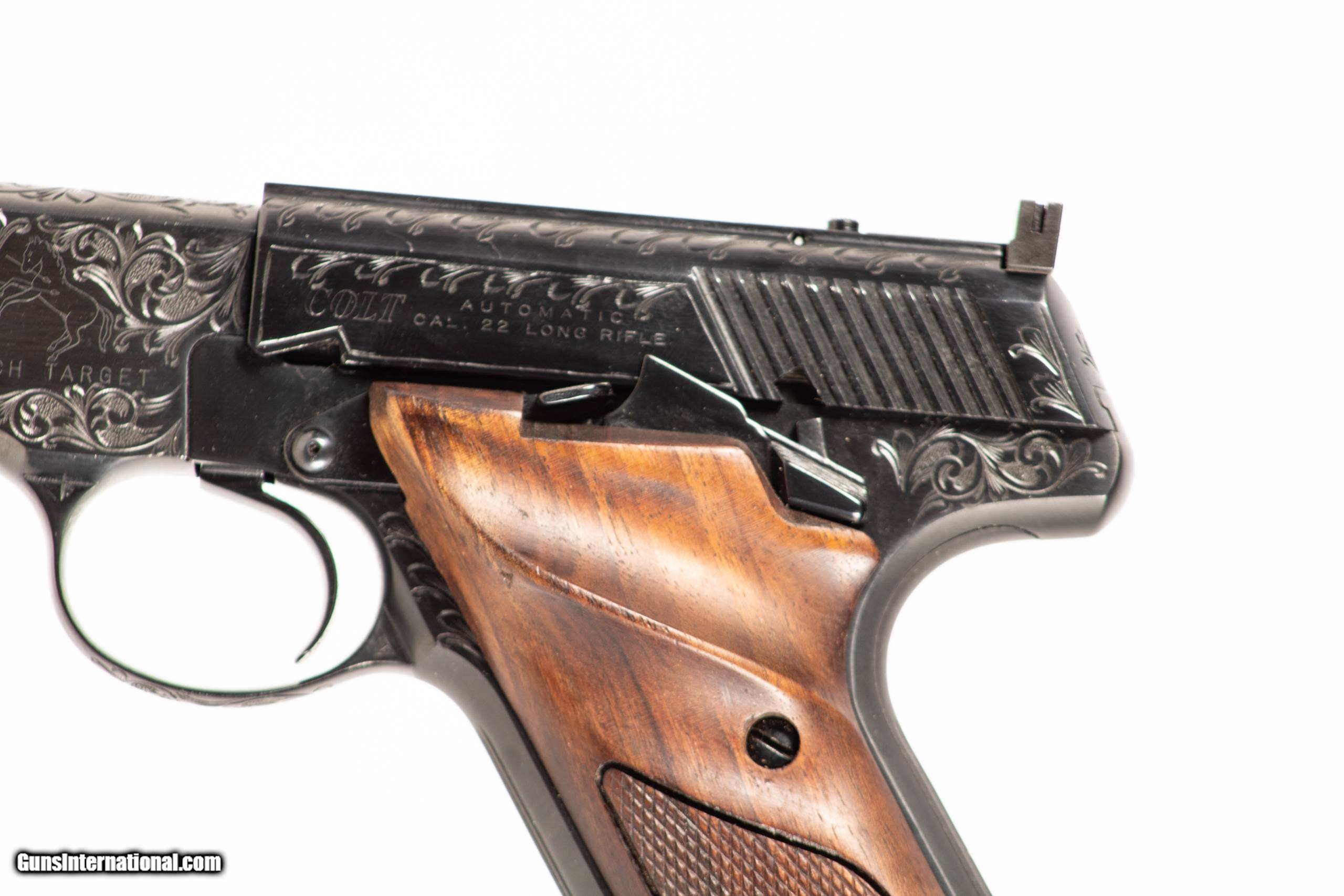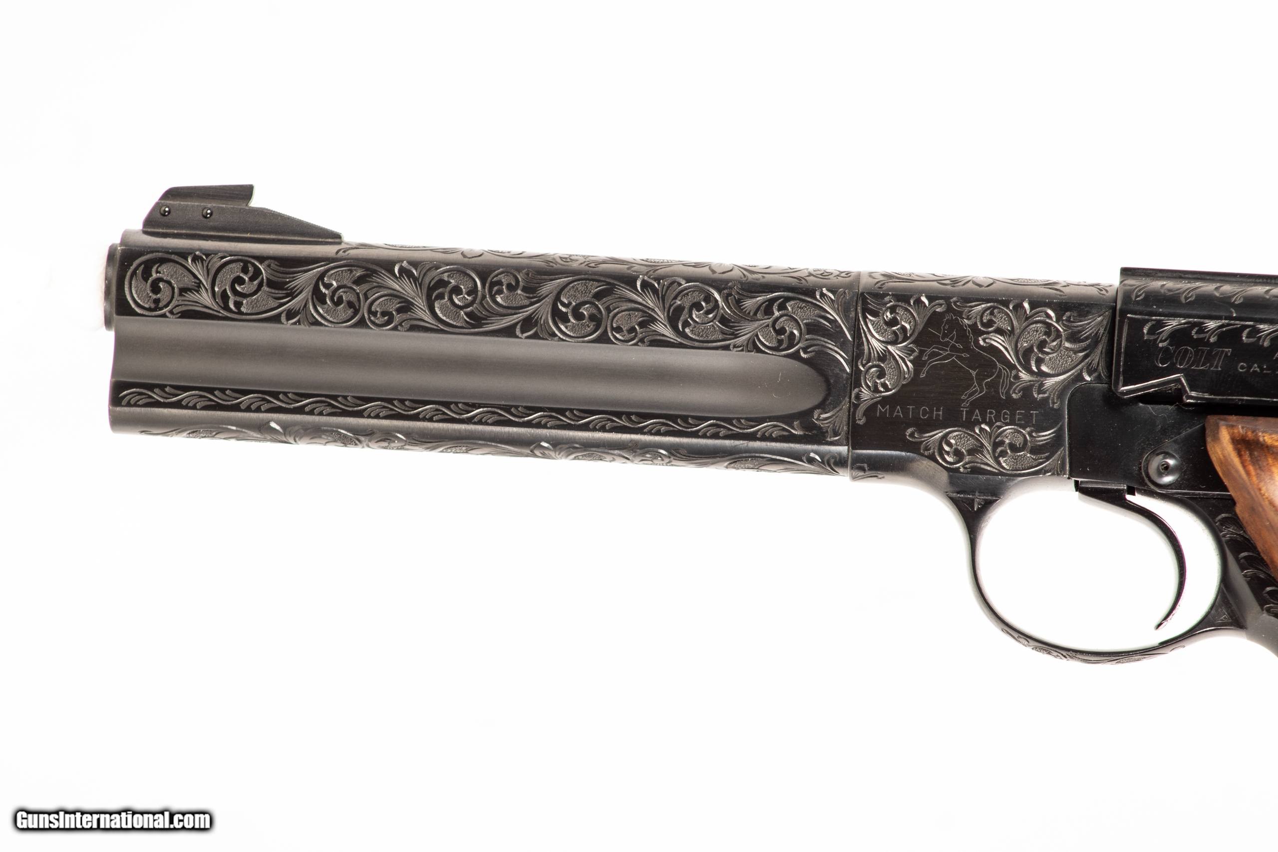 Description: Engraved Colt Match Target chambered in 22 LR with a 6 inch barrel and bright & shiny bore. The NRA grading condition for this firearm is Excellent. Dury's Lifetime Warranty: All firearms purchased from Dury’s Gun Shop, NEW or USED, are covered by a lifetime warranty. We will repair or replace, at our discretion, any firearm purchased from Dury’s Gun Shop, Inc. for as long as it is owned by the purchaser. This warranty is not transferable. WE BUY GUNS! NO COLLECTION TOO BIG OR SMALL FOR OUR GUNS INTERNATIONAL CUSTOMERS ALL OF OUR FIREARMS CAN BE PURCHASED DIRECTLY FROM OUR DURY'S GUNS ! SOLD Manufacturer: Colt Model: MATCH TARGET Caliber Info: 22 Long Rifle Barrels: 6inches |