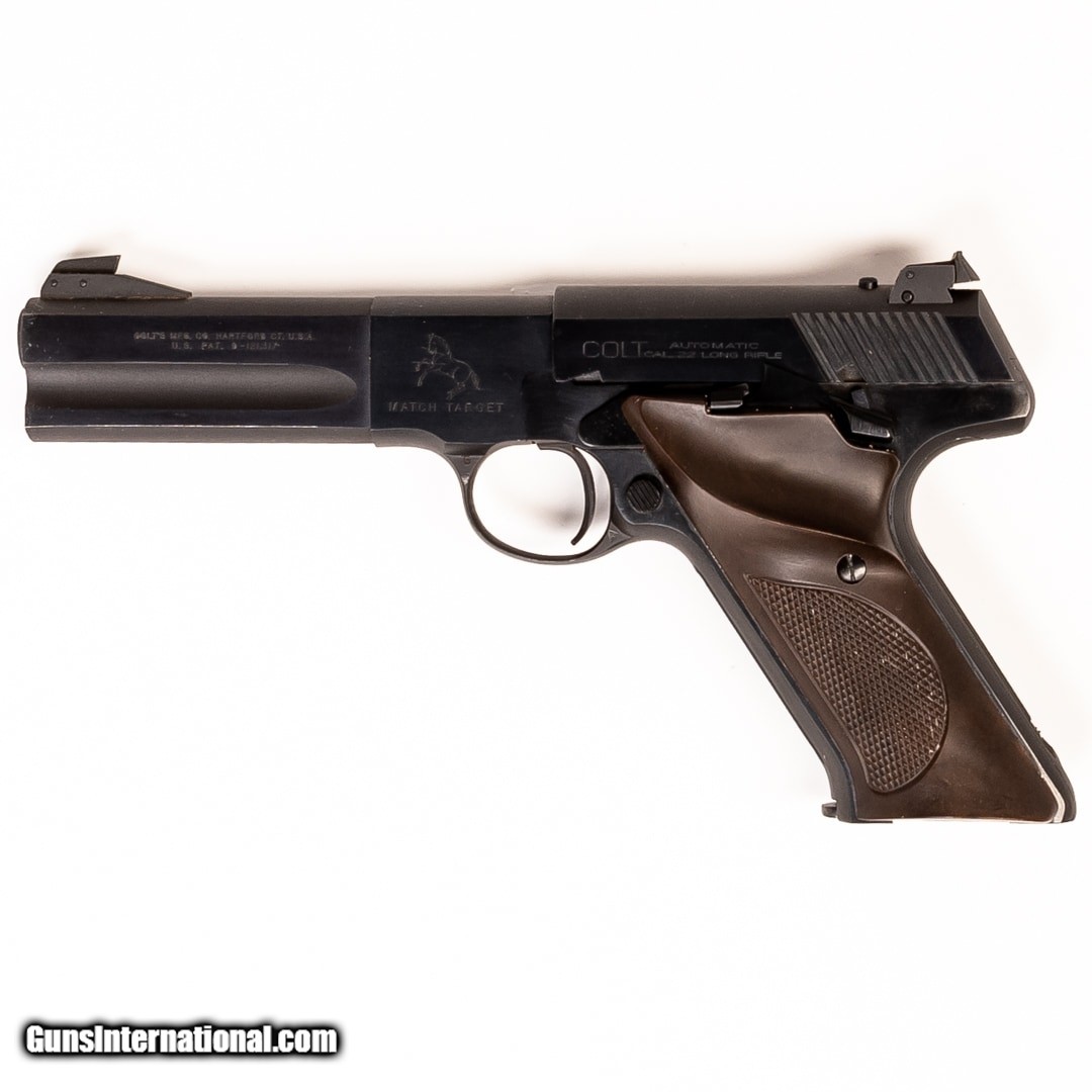 Description: Guns Listing ID: 451383 The Colt Match Target is a semi-automatic handgun known for its precision and dependability. It‚‚s chambered in 22 LR and is a great target pistol that would also work well for small game hunting. This Match Target includes the original box, manual, one 10-round magazine, and the test target. Serial number: 95316- SOLD Manufacturer: COLT Model: MATCH TARGET Caliber Info: .22 LR Condition: Used - Certified Barrels: 4.5 BARREL Finish: BLACK |