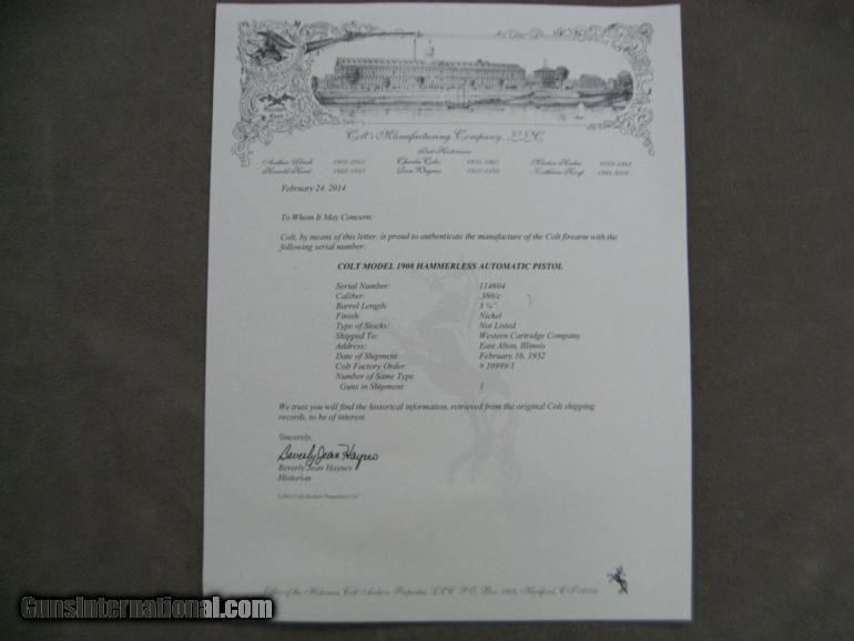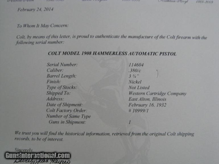 COLT MOD 1908 SPECIAL ORDERED NICKEL & PEARL .380 ACP