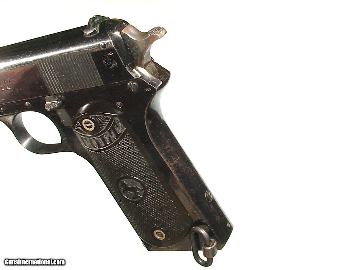 Description: .38 Colt rimless caliber, long-slide action. Finished blue with casehardened hammer and fireblue trigger. Retaining nearly all of the original high polish blue and mint hardrubber grips. Mint bore. Appears very little used. 1914 mfg. SOLD Curio/Relic: Yes |