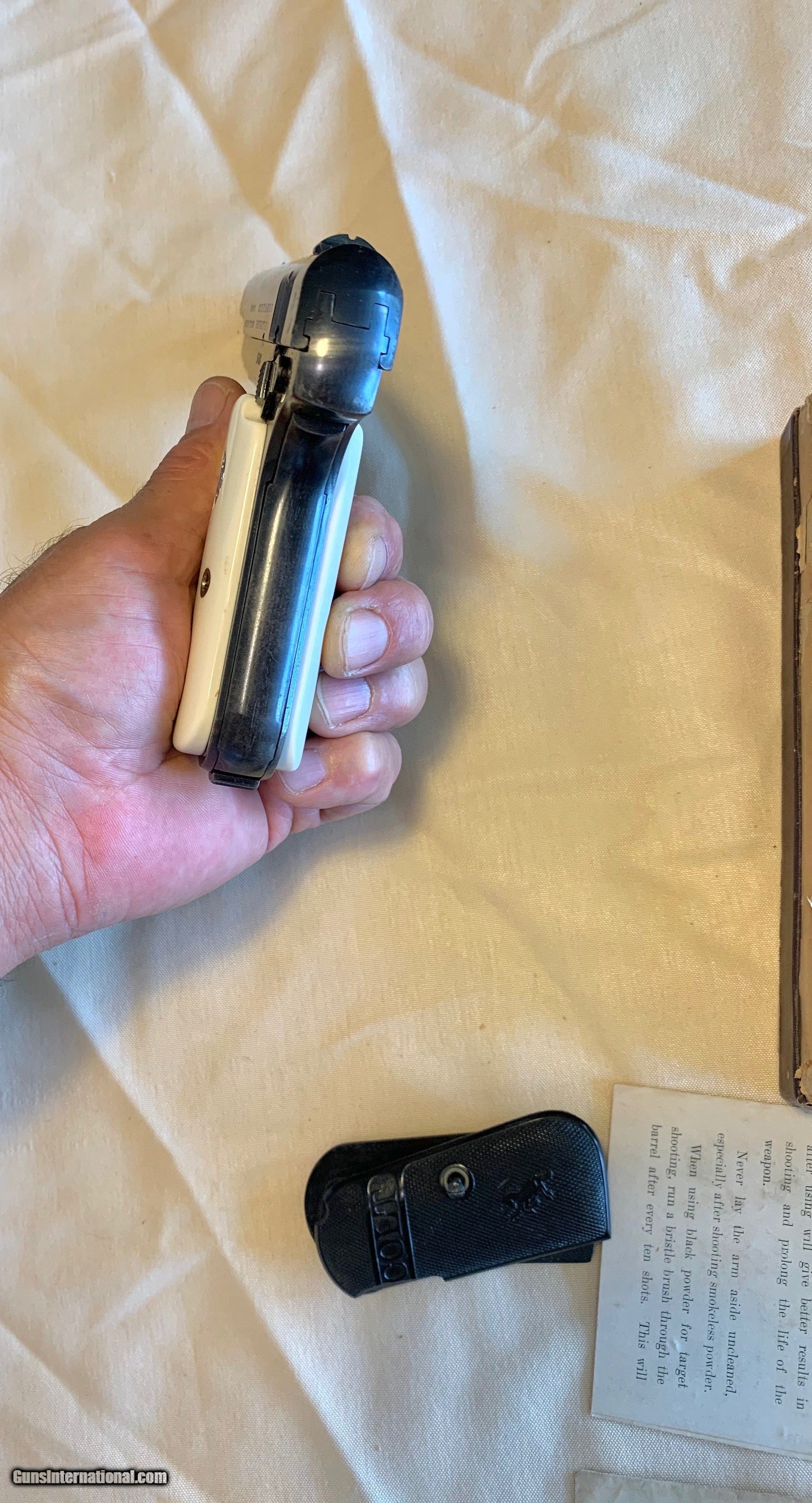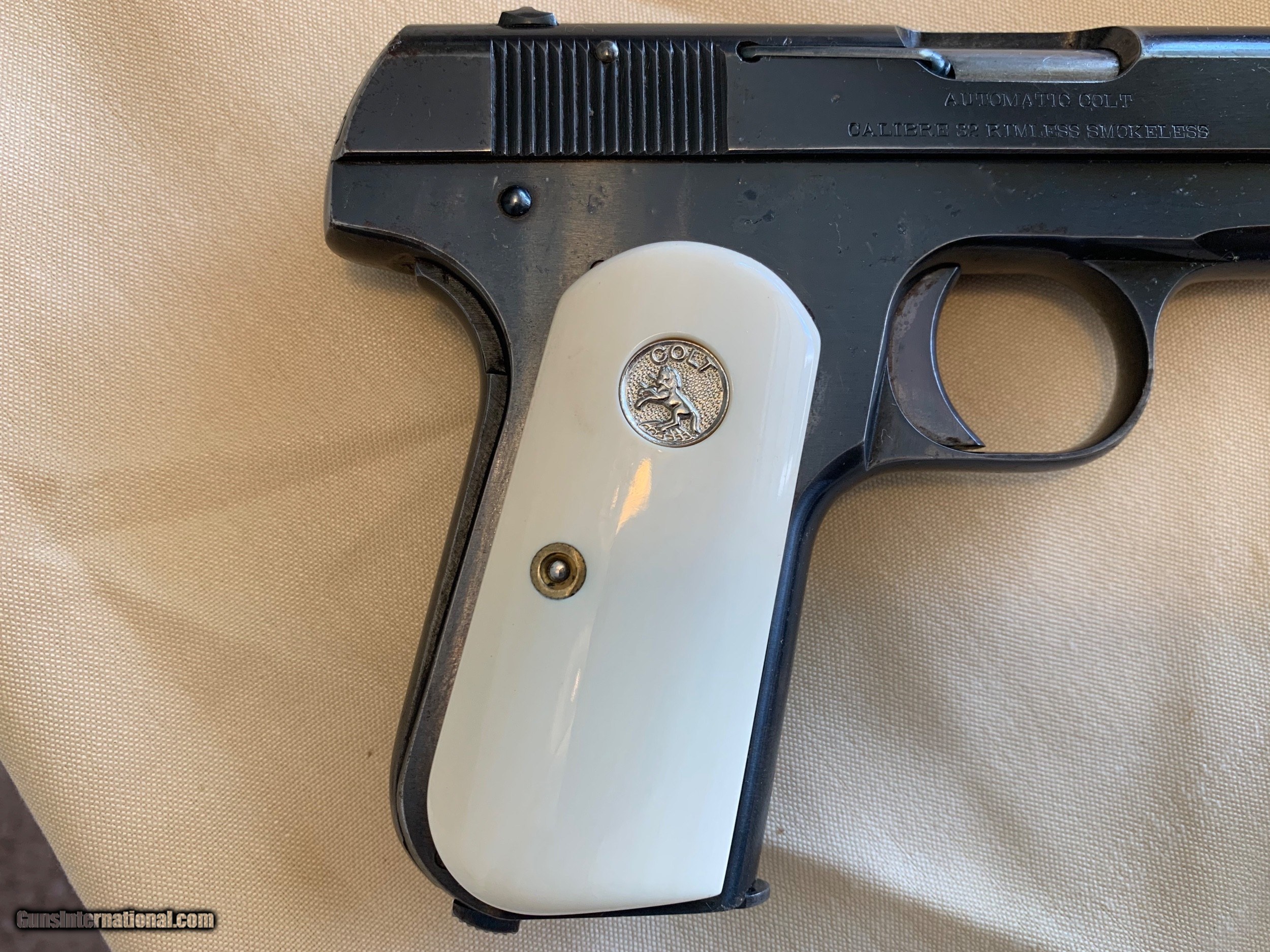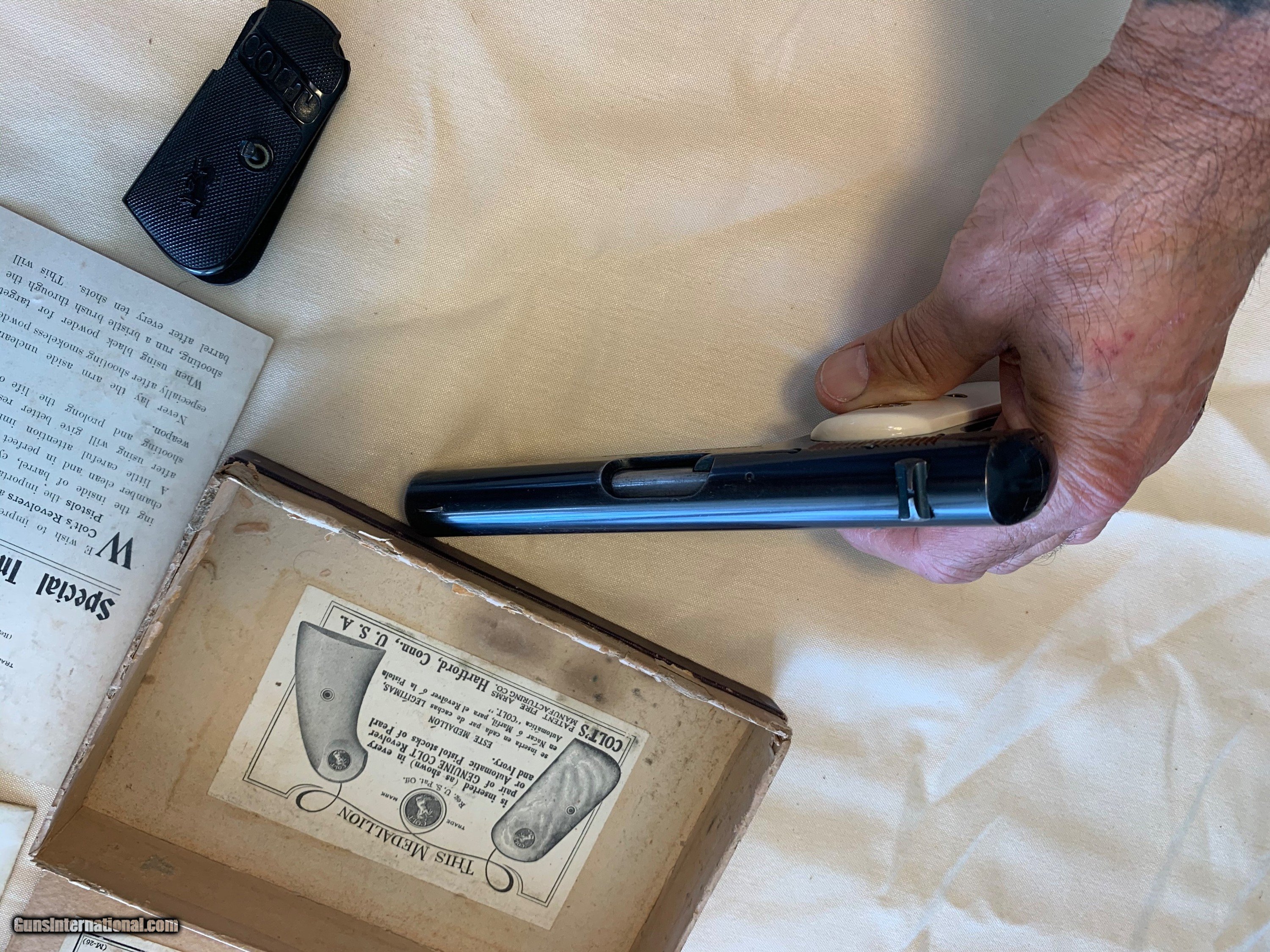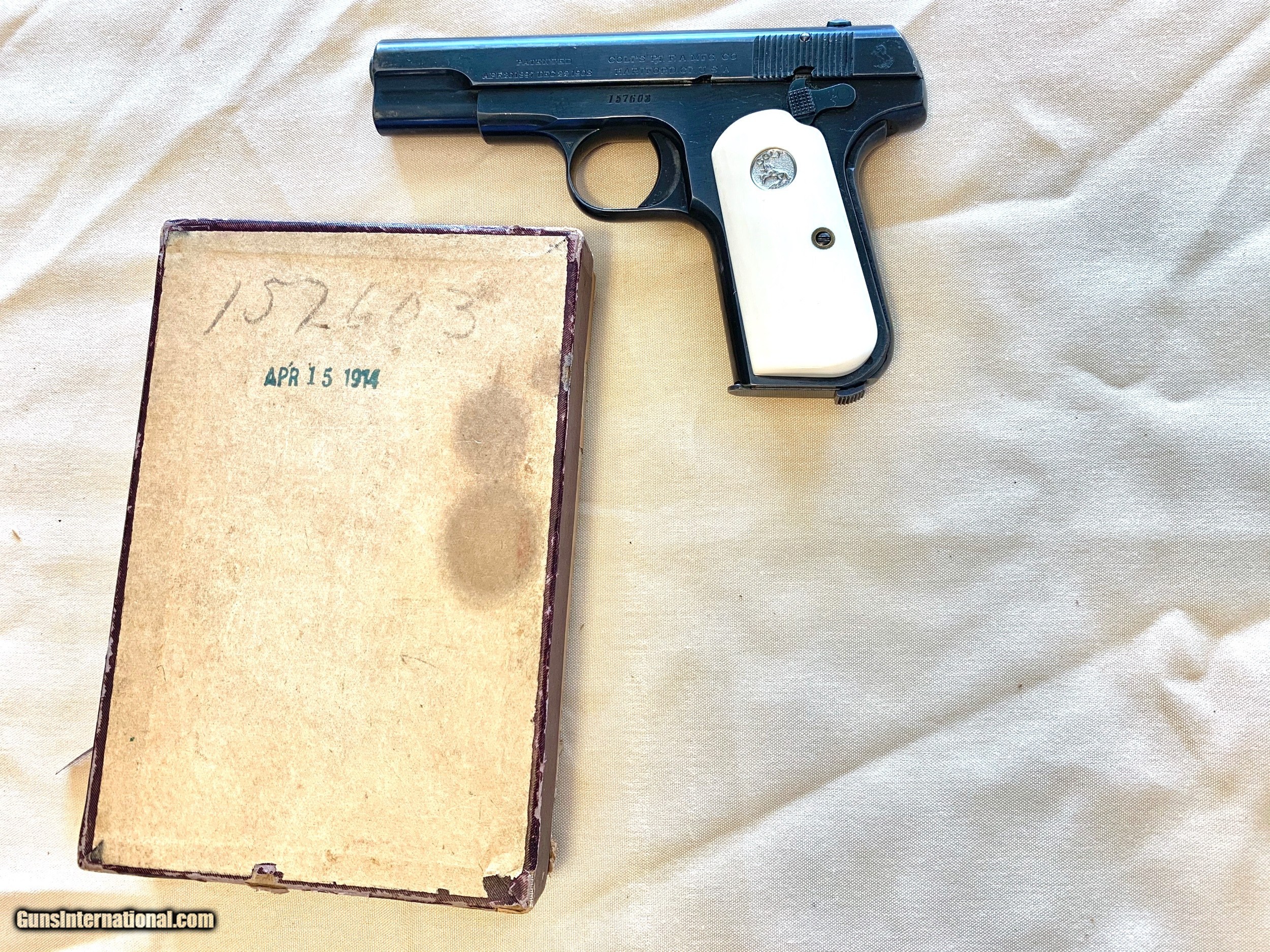 Description: Heres a very nice Colt 1903 . 32 caliber . Comes with original box and paperwork also has original cleaning rod . Gun comes with original grips and Colt grips on gun . Gun is in Excellent Plus Condition. Bore and mechanics are Excellent Plus . Most all of its original luster blue Finish still remains . Gun is un used . Please review my photos and email me with any questions? 3 day inspection as allways . Thank you for looking Little Jo SOLD Curio/Relic: Yes Manufacturer: Colt |