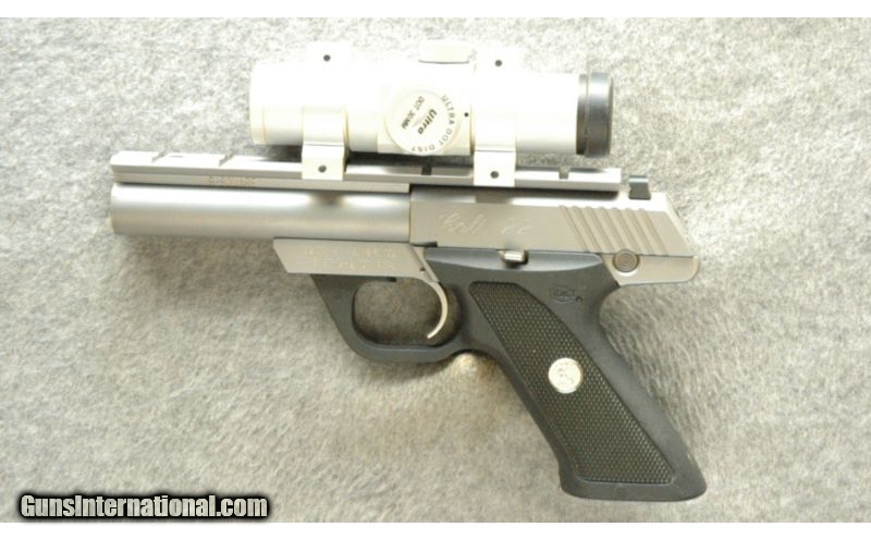 Description: SOLD Caliber Info: .22 Long Rifle Metal Condition: Excellent, Few Light Nicks & Small Handling Marks Wood Condition: Grips are Excellent Bore Condition: Bright Barrels: 4 1/2" Heavy Barrel Stock: Colt Grips Weight: 2 Lbs 10 ozs Sights: Ultra Dot 30mm Red Dot Scope Extras: With one mag, no box Item Location: La Vista, NE |
