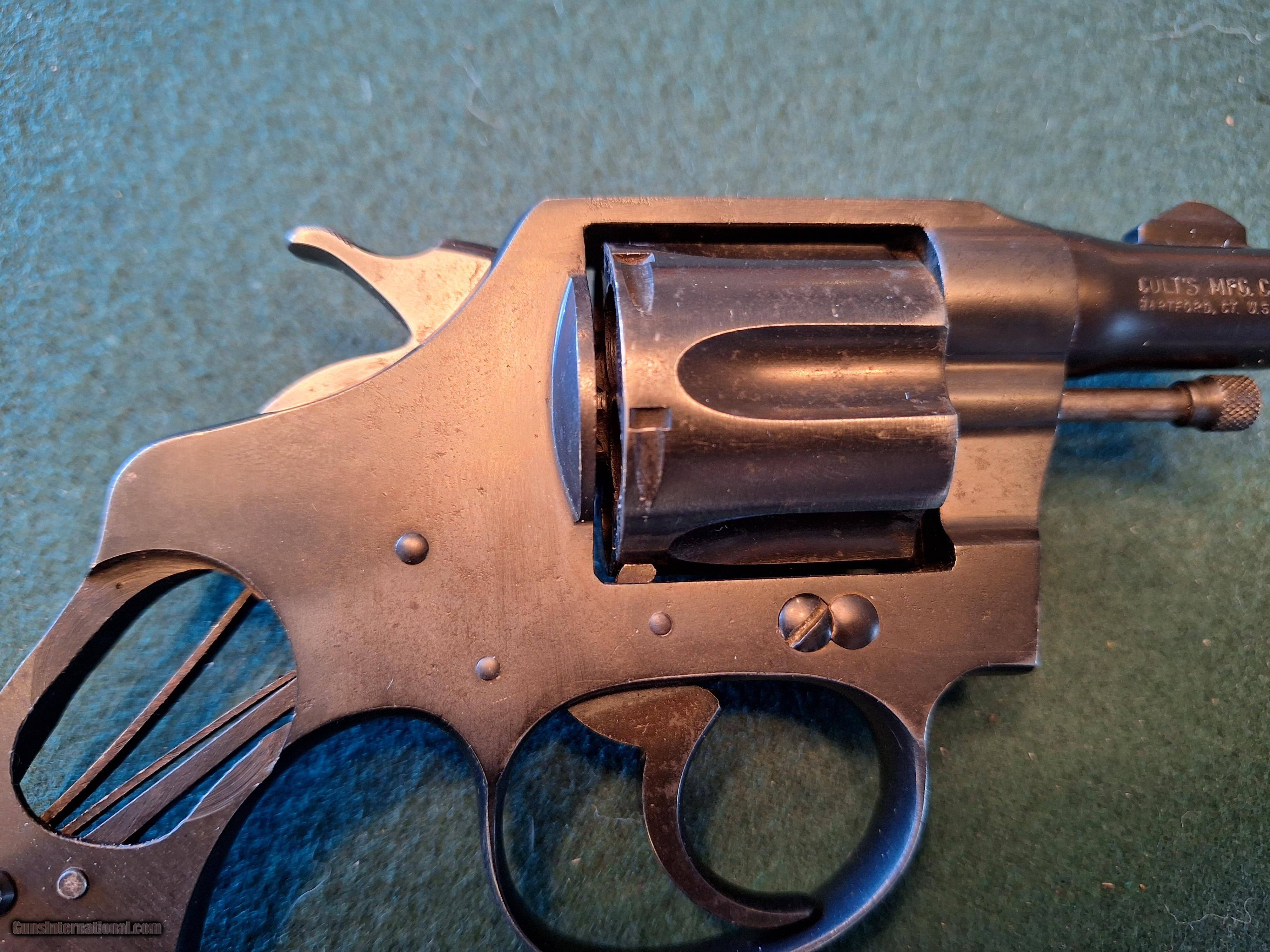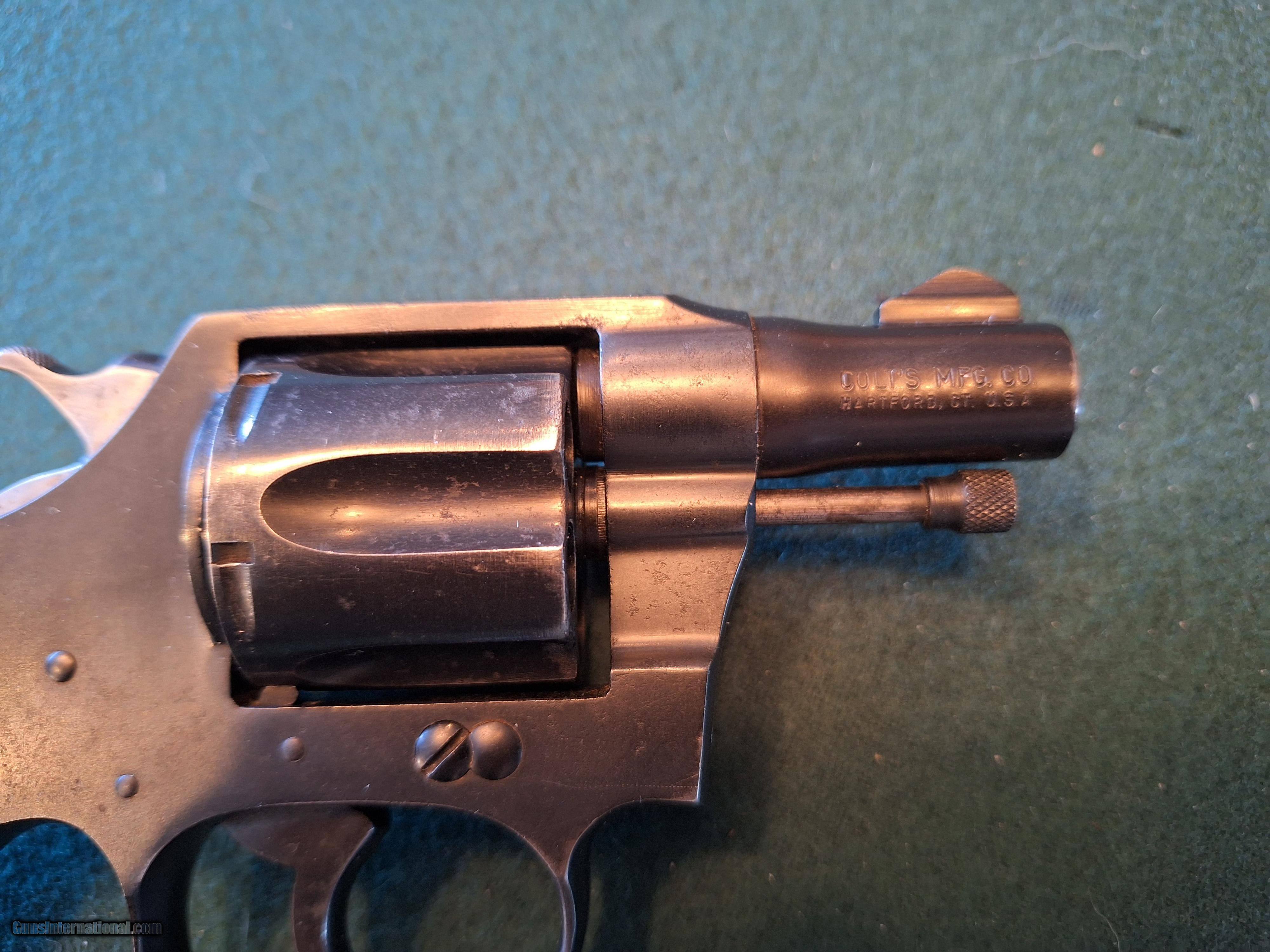 Description: Colt. Model Bankers Special Revolver. Cal 38. 2: Barrel with an excellent bore. Very good condition. Missing grips. Three smal intitials neatly engraved on the back strap. probably from former owner. Price: $550.00 Contact Seller |