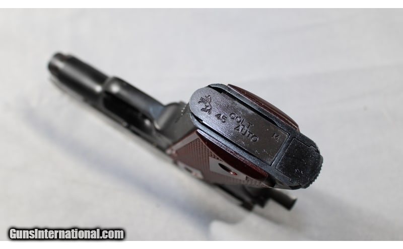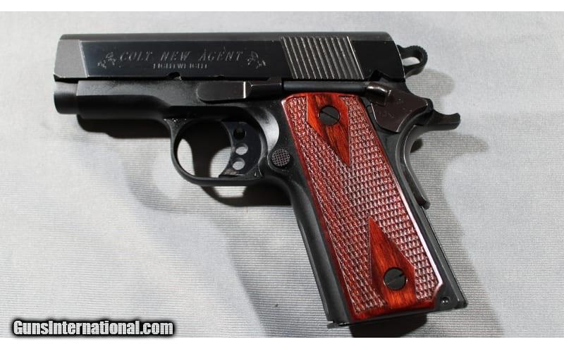 Description: Colt New Agent Model 10 lightweight featuring blued slide/reciever with stained wood grip plates, groove line sight channel and original hard case. .45 Auto SOLD Chambers: .45 auto Metal Condition: "good, wear consistant with use Wood Condition: good Bore Condition: good Barrels: 3' Stock Dimensions: N/A Fore End: N/A Butt Pad: N/A Weight: 4lbs Sights: groove line Chokes: N/A Item Location: East Peoria, IL |