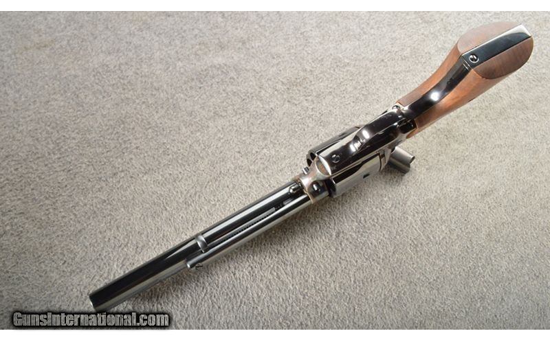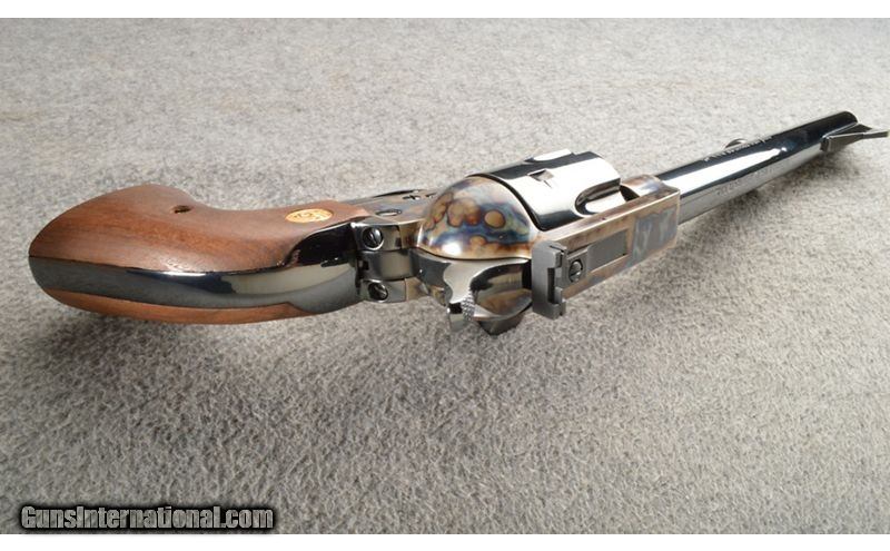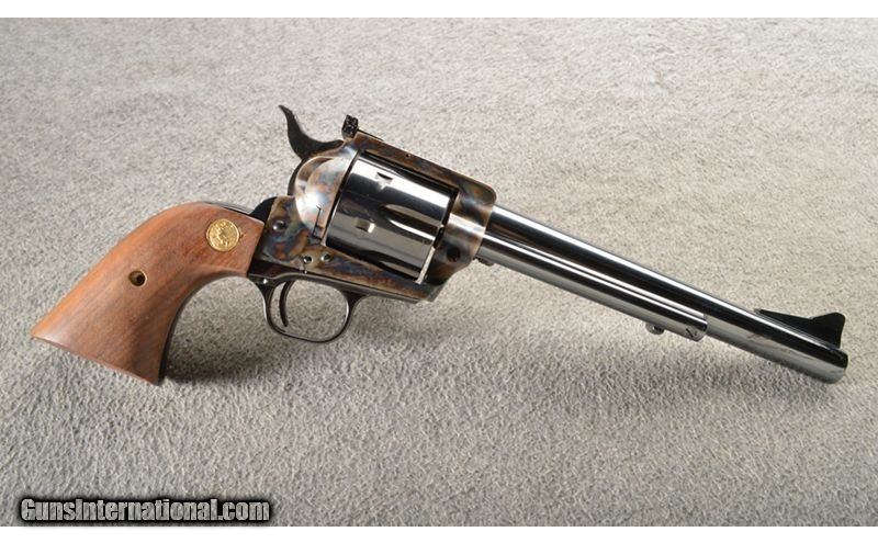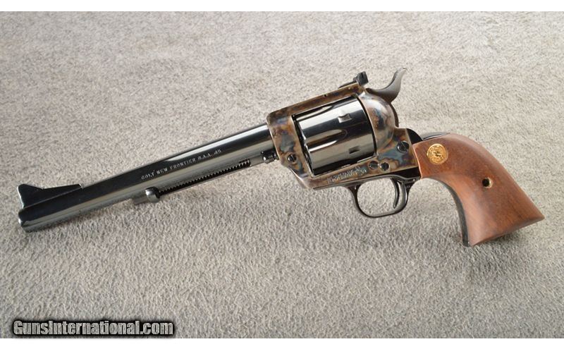 Description: The New Frontier was introduced in 1961, and the name "New Frontier" took advantage of the slogan made popular by President John F. Kennedy. From the outset, the Colt New Frontier was to single-actions what the Colt Python was to double-action revolvers, the Cadillac of handguns. The target-sighted single-action came with a smooth action, attractive finish, high-visibility adjustable sights, and smooth walnut stocks with the Colt logo in silver or gold. .45 Colt SOLD Chambers: 6 shot revolver. Metal Condition: New. Wood Condition: New. Bore Condition: New. Barrels: 7.5" barrel. Triggers: Single. Weight: 2.5 lbs Sights: Bladefront/U-notch rear. Item Location: Owatonna, MN |