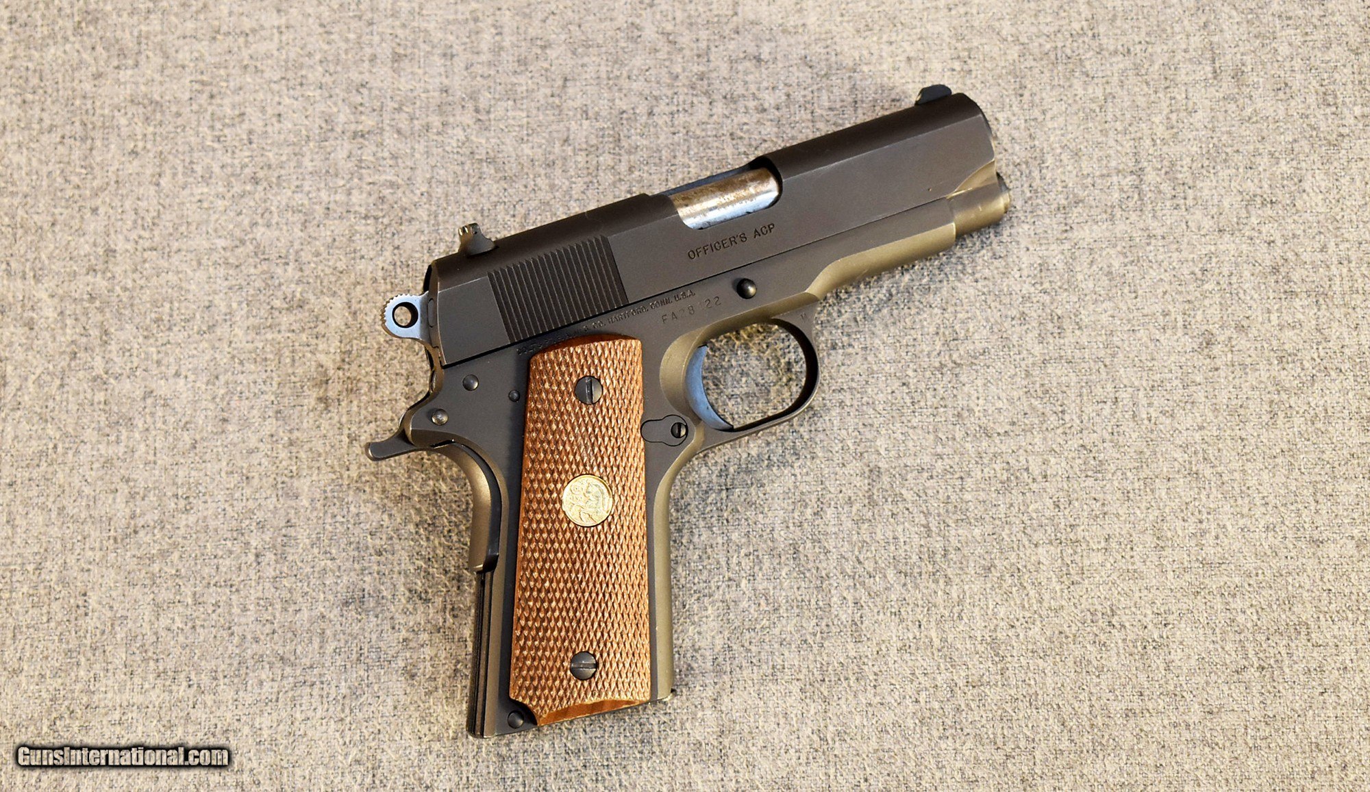 Description: This is a pre-owned Colt Officer's ACP in .45 Auto made in 1987 .45 ACP SOLD Metal Condition: Good overall with a number of small to medium-sized scratches and rub marks plus light corrosion on the top of the barrel Wood Condition: Very good with light handling wear Bore Condition: Clean with bright lands Barrels: 3.5 Triggers: SA Butt Pad: Checkered walnut Weight: 2 lbs Sights: Fixed 3-dot Item Location: Glendale, AZ |